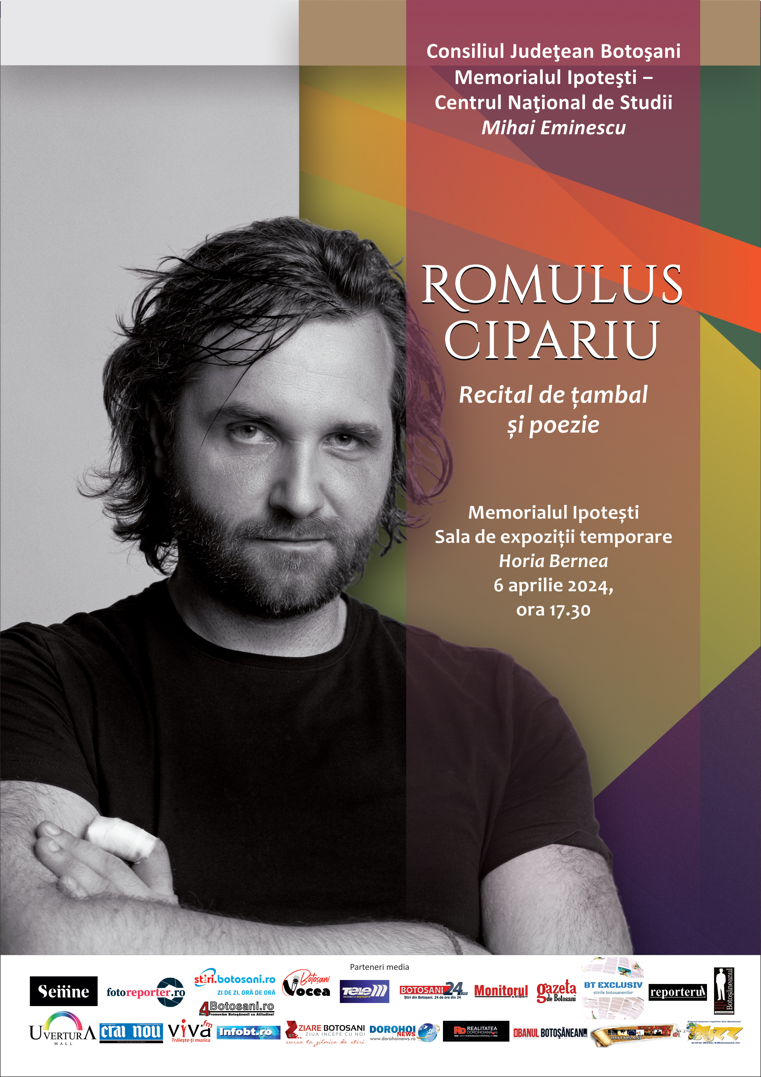 La 17:30, artistul Romulus Cipariu va susține un recital de poezie și țambal. Autentică, fascinantă, plină de temperament – așa ar putea fi descrisă muzica artistului sibian Romulus Cipariu, interpretată cu multă pasiune la țambal. Romulus Cipariu este unul din fondatorii trupei sibiene Domino cu care a concertat atât în țară, cât și în străinătate.
