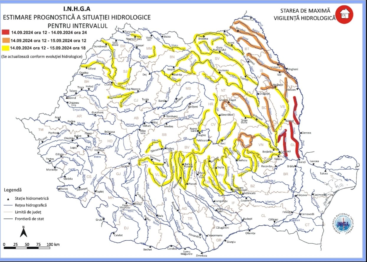 Hidrologii au actualizat la rândul lor prognoza și au anunțat că există, în continuare, risc de inundații pe râurile Jijia, Prut și afluenții acestora și au instituit: