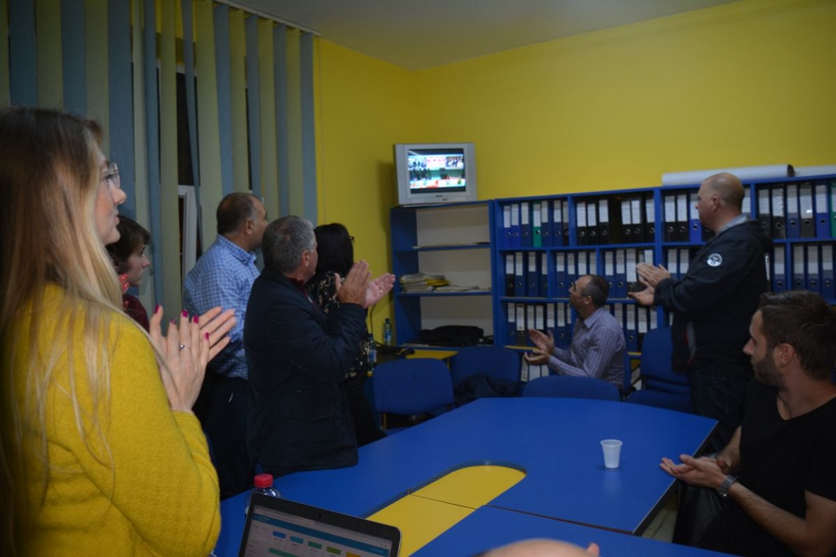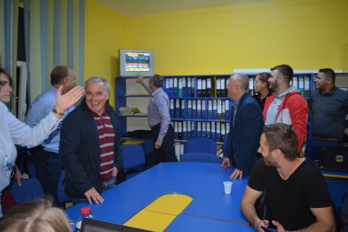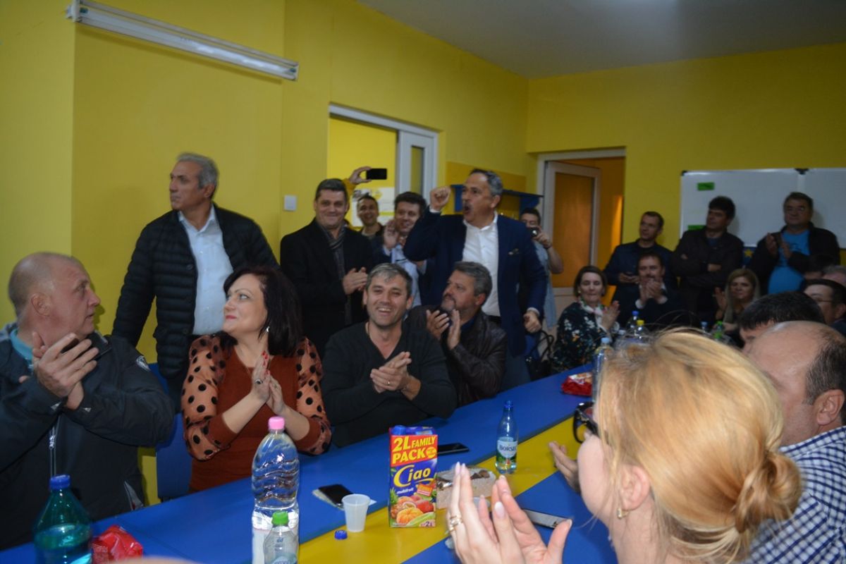 Liberalii au privit la Realitatea Plus primele estimări oficiale ale rezultatelor și când au văzut că președintele în funcție conduce detașat, au sărit de pe scaune și au aplaudat.
