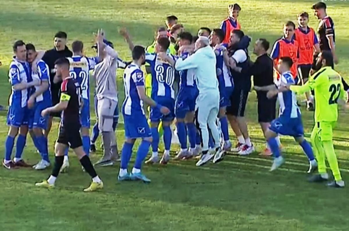 La finalul meciului spectatorii au intrat pe teren ca să sărbătorească promovarea.