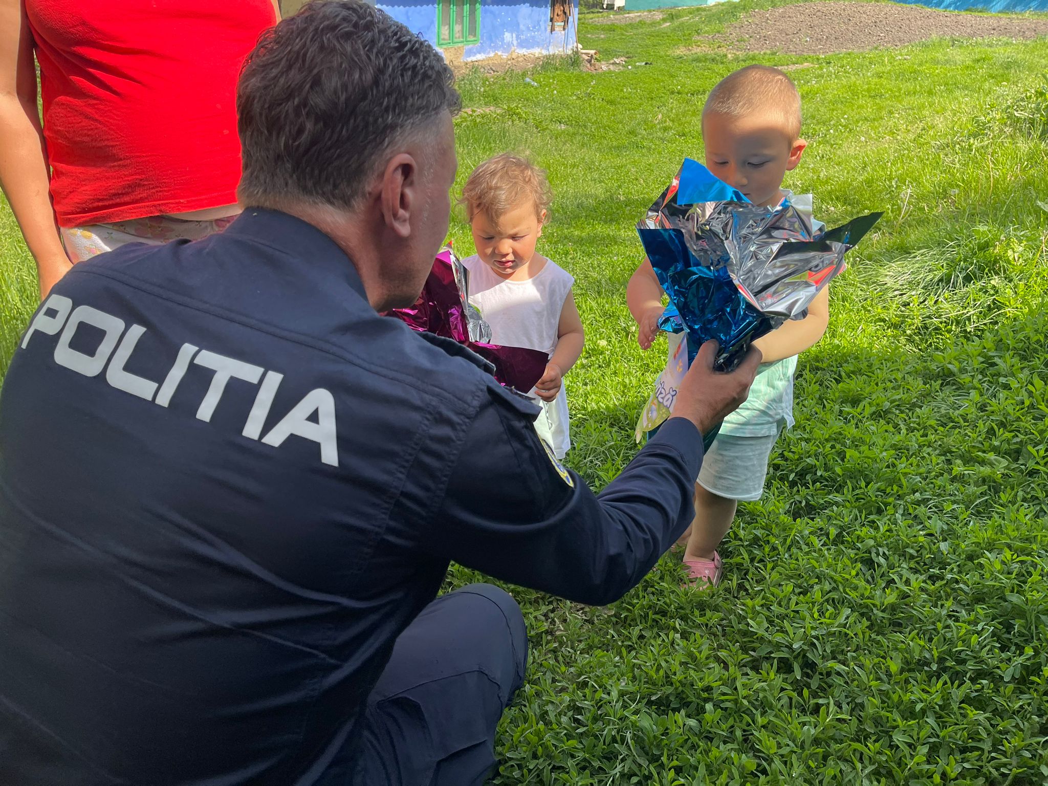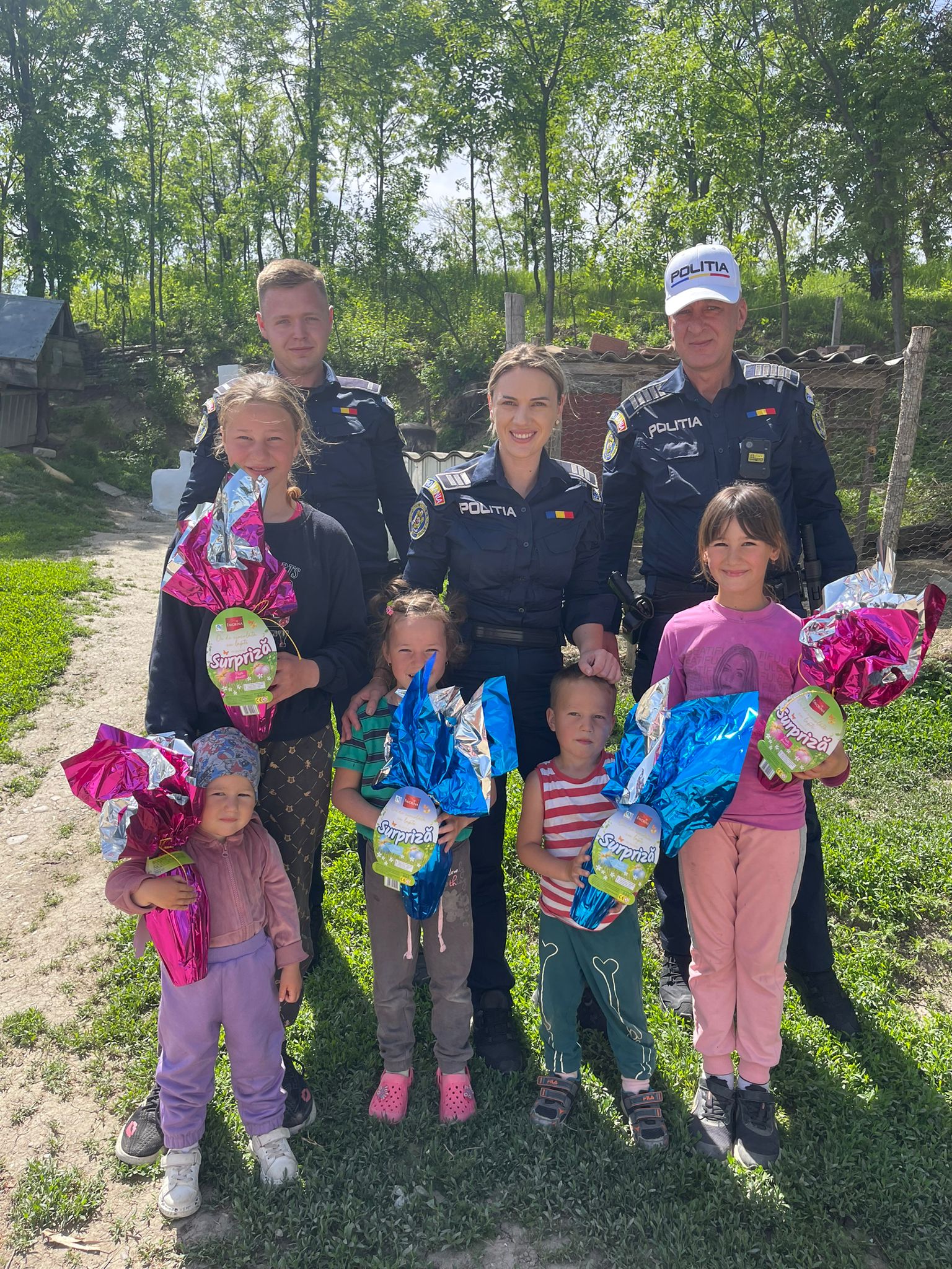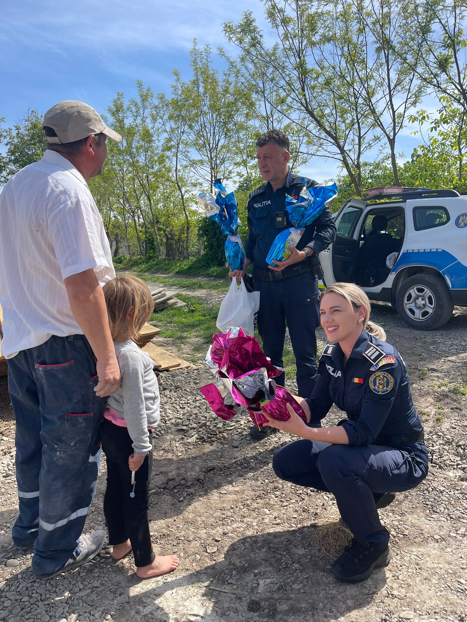 Oamenii legii s-au mobilizat și au mers în patru localități din județ pentru a dărui tot ce este nevoie în preajma Paștelui unor copii cu mai puține șanse decât alții.