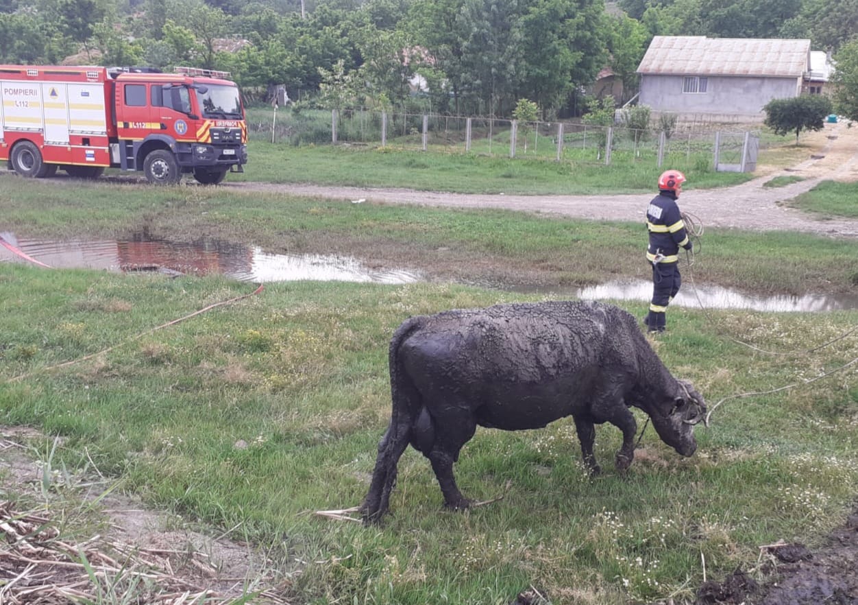 O intervenție neobișnuită a avut loc, în urmă cu puțin timp, în localitatea Petricani, unde o bovină a fost salvată de pompieri după ce a căzut în râul Bașeu.