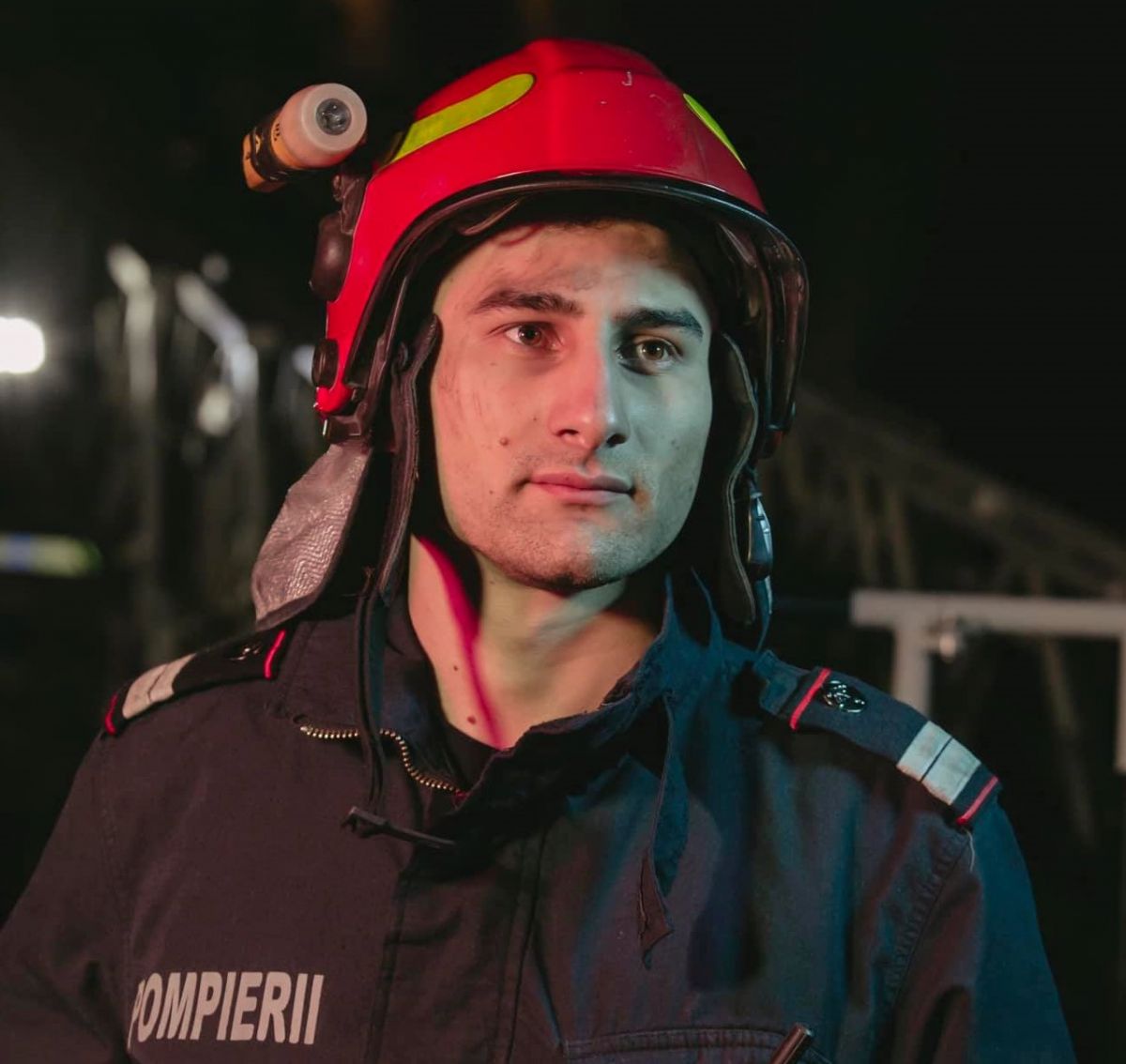 Avea 19 doar ani când a intrat în colectivul Detașamentului 1 de Pompieri Iași și este îndrăgit de colegi datorită spiritului său generos și dăruirii cu care își face profesia.