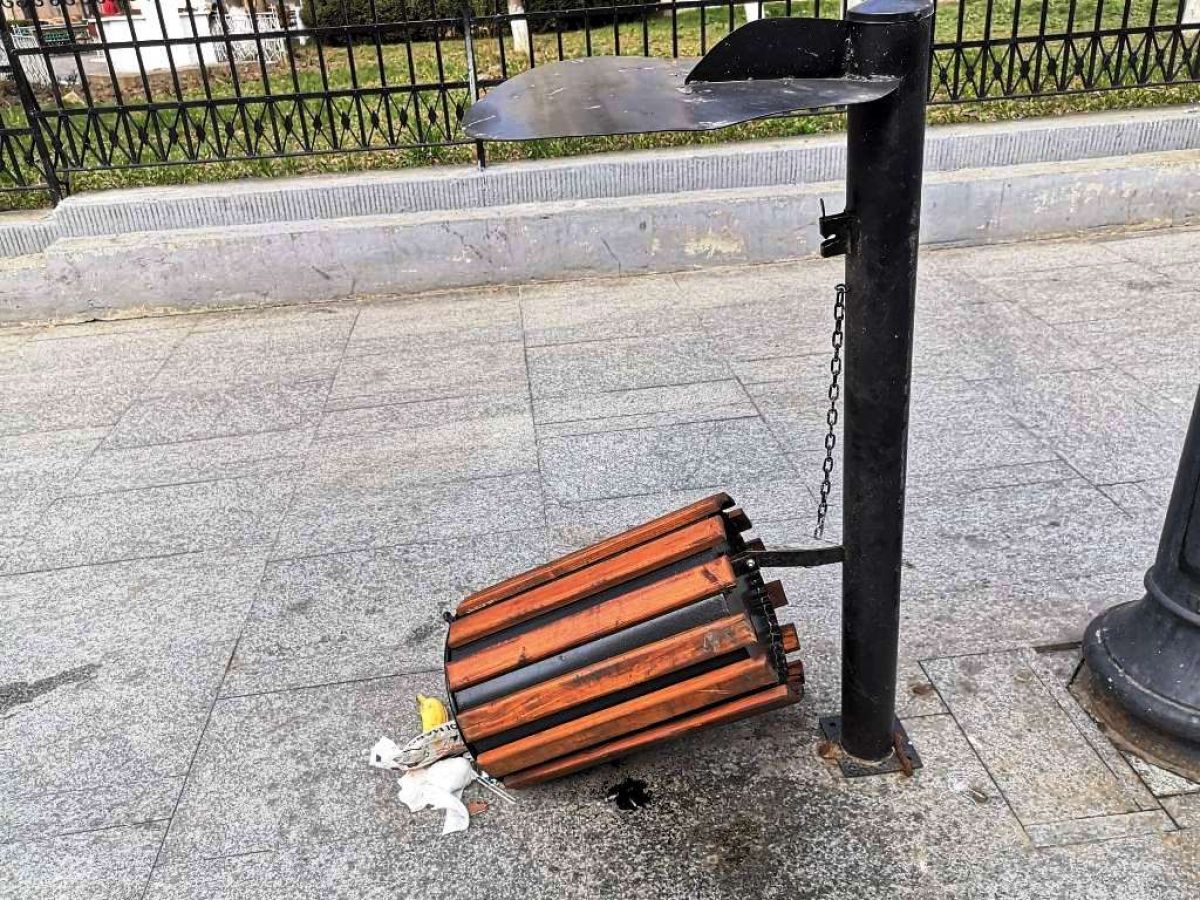 Cetățenii din Centrul Vechi au mai ”rezolvat” un coș de gunoi, că doar le stătea în cap