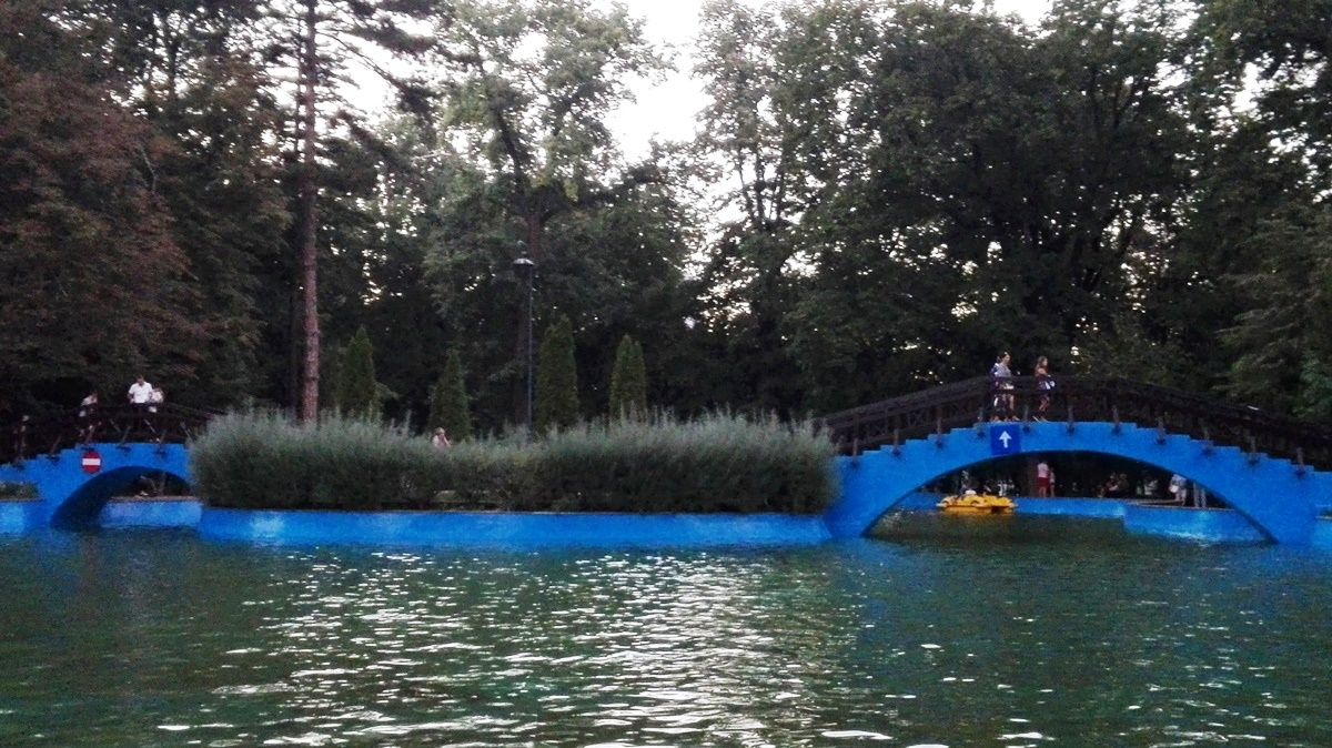 Lacul din parcul Mihai Eminescu, bănuim că singurul din țara asta cu semne de circulație importate de pe stradă