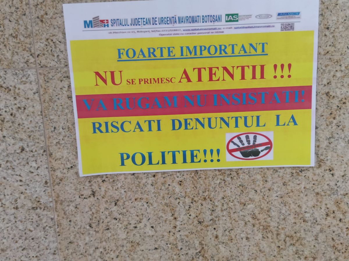 Anunțul apărut la Spitalul Județean Mavromati