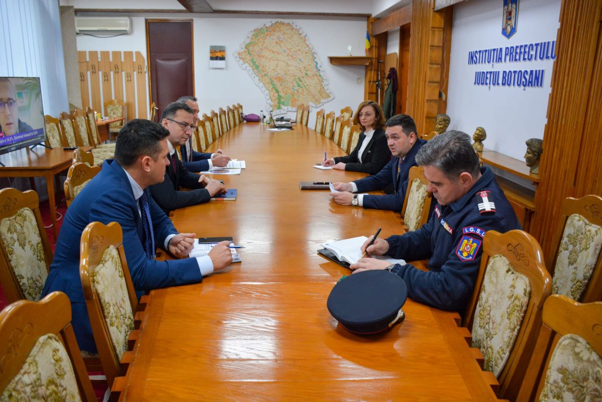 Sorin Cornilă, prefectul județului Botoșani, a convocat, astăzi, o ședință de analiză și evaluare a măsurilor dispuse la nivelul Județului Botoșani pentru creșterea gradului de siguranță a botoșănenilor pe timpul sezonului rece și în contextul sărbătorilor de iarnă.