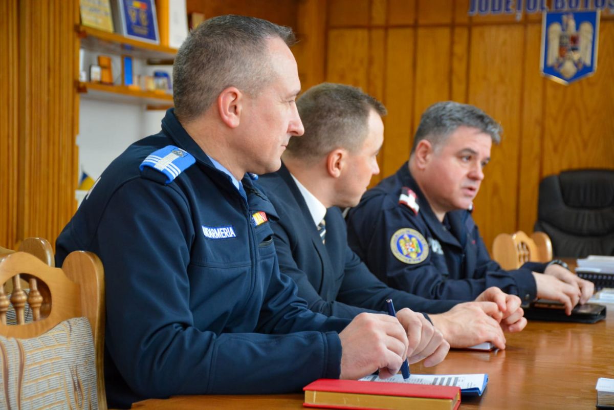La întâlnirea de lucru au participat Comisar șef Costîn Tudor – Împuternicit șef al IPJ Botoșani, colonel Decebal Muraru – Inspector Șef al ISU Botoșani și Colonel Cristian Boariu – Inspector şef al Inspectoratului de Jandarmi Judeţean Botoşani.