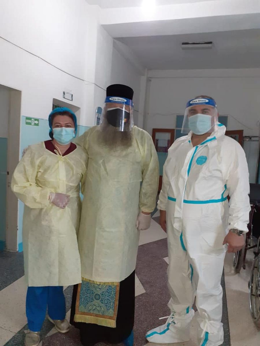 Părintele a postat în spațiul public fotografii în care apare atât în interiorul spitalului, echipat conform regulilor pandemiei, dar și alături de copiii și tinerii care au participat la Deniile din Săptămâna Patimilor.