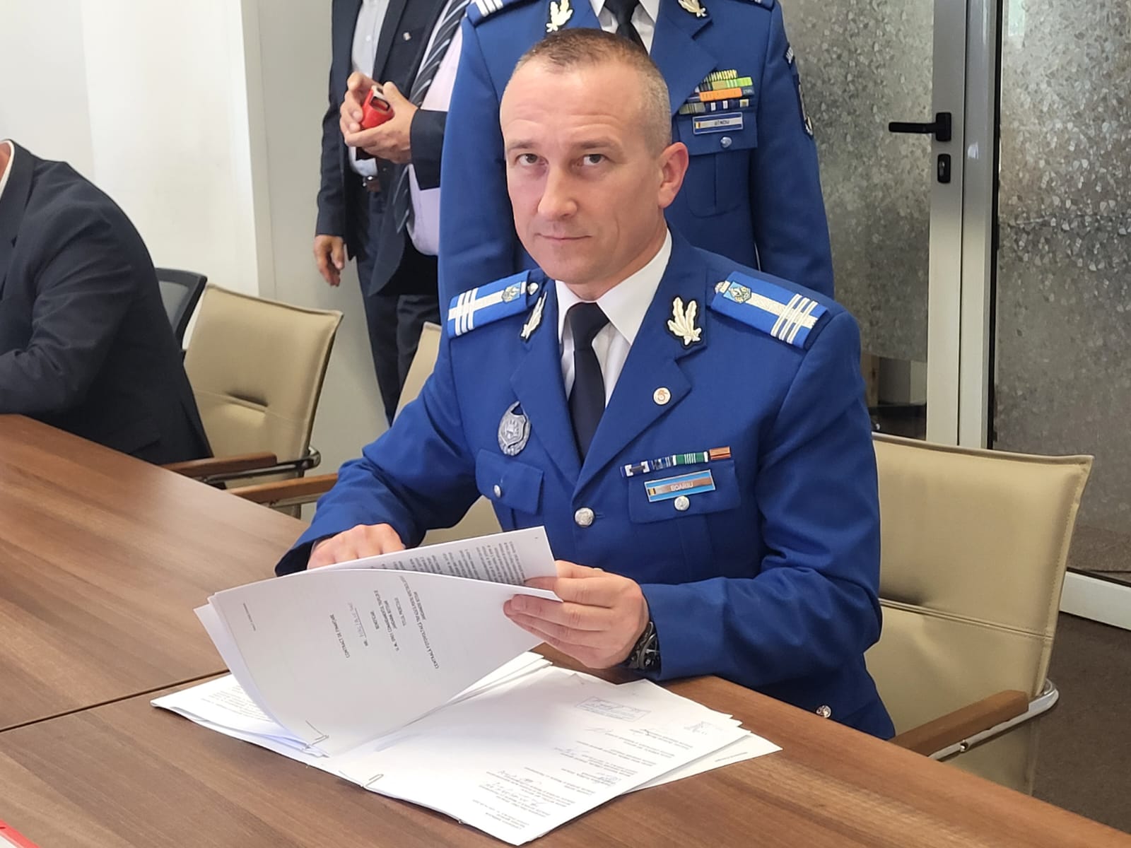Colonelul Boariu Cristian, inspector șef, alături de responsabilul de proiect, căpitan Gîndu Ciprian, șeful Serviciului Logistic, a semnat contractul de finanțare aferent proiectului, în prezența domnului Sebastian-Ioan Burduja, Ministrul Energiei. Evenimentul marchează începutul unui demers strategic pentru independența energetică a instituției.