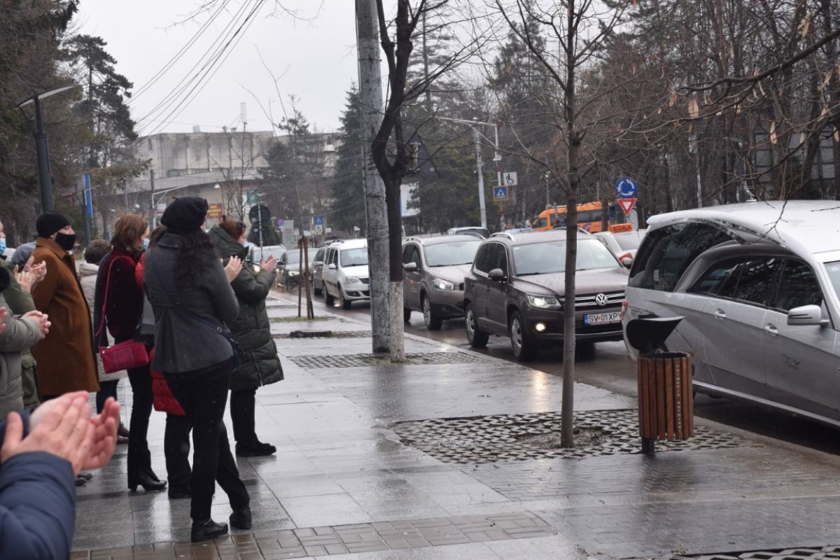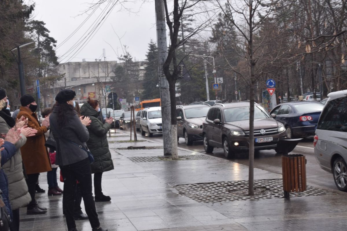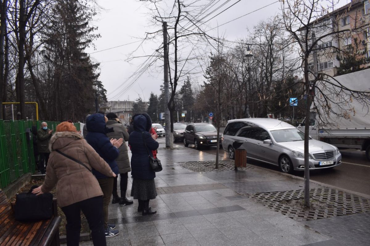 Când cortegiul funerar s-a apropiat de unitatea de învățământ, profesorii au aplaudat preț de câteva secunde.