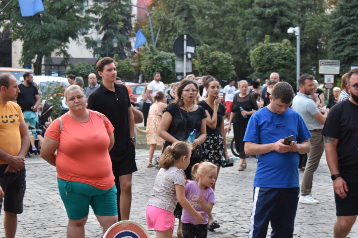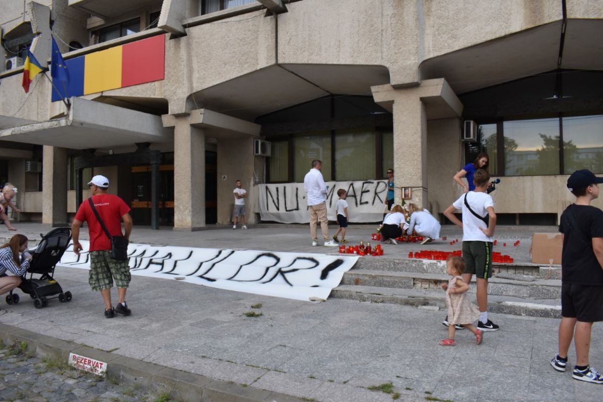 Doar că oamenii care s-au adunat în zonă au stat mai degrabă în fața Prefecturii și în partea opusă, la cealaltă intrare.