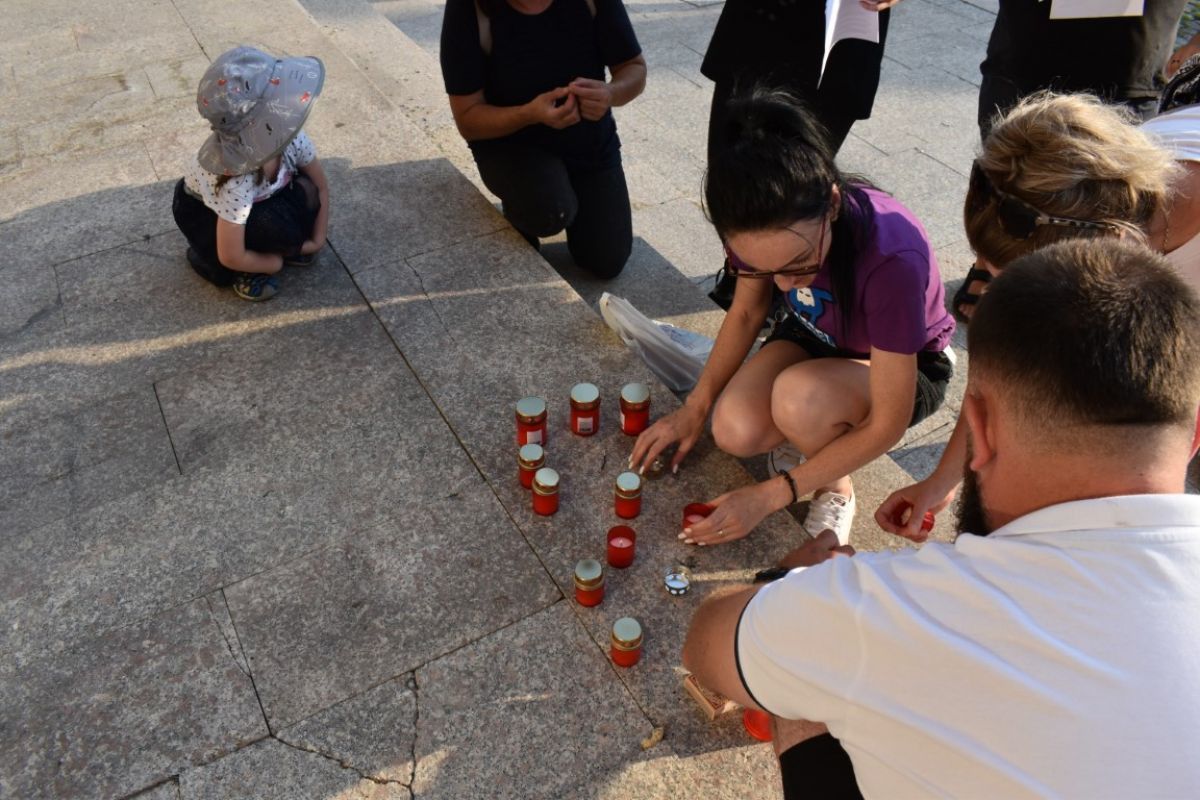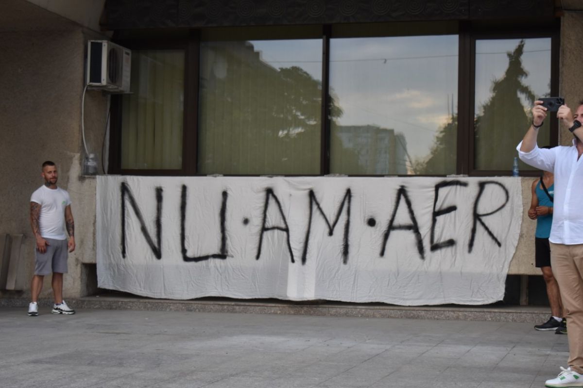 Au fost afișate și două bannere mari pe peretele Palatului Administrativ cu mesajele: „Nu am aer” și „Criminalilor”.