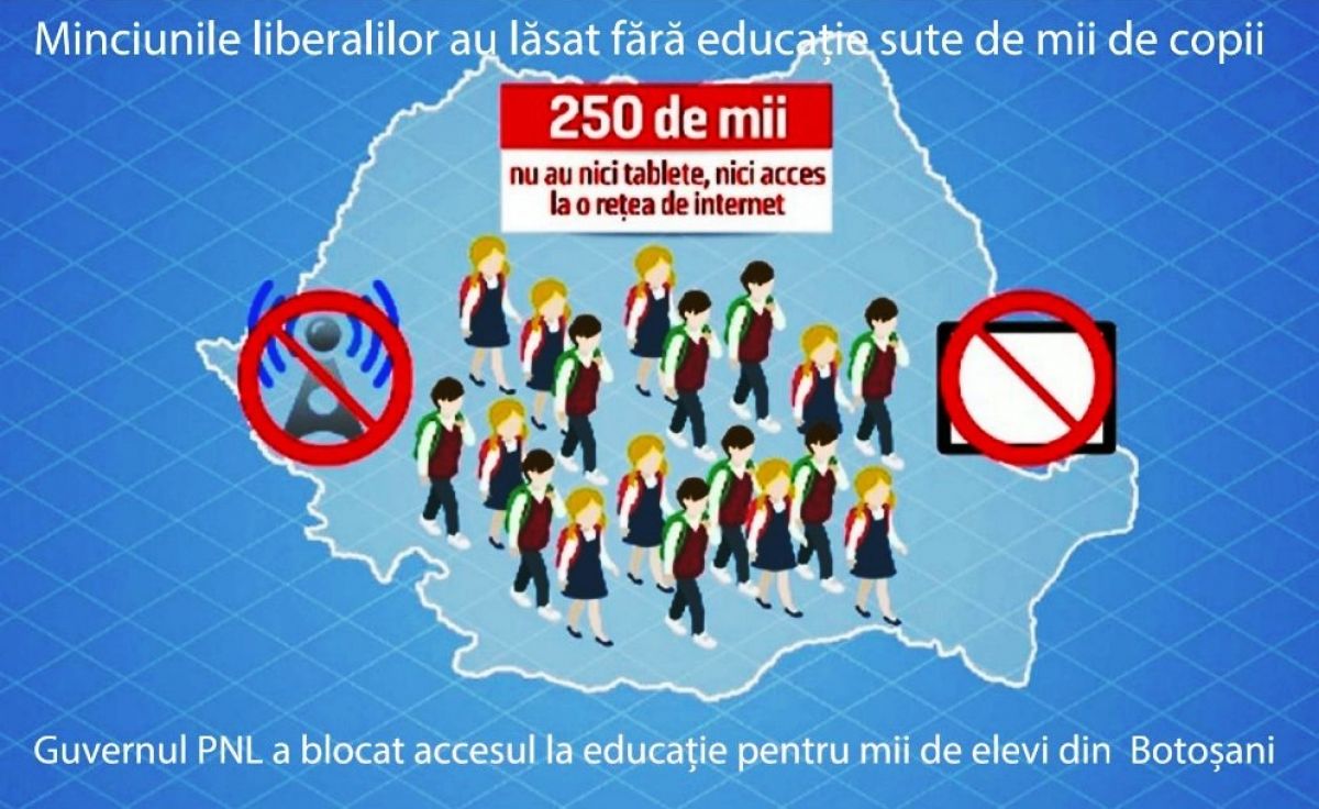 PSD Botoșani le cere guvernanților liberali să spună de ce i-au mințit pe părinții și copiii din Botoșani și din celelalte județe din țară pe care i-a lăsat de izbeliște, fără acces la școală.
