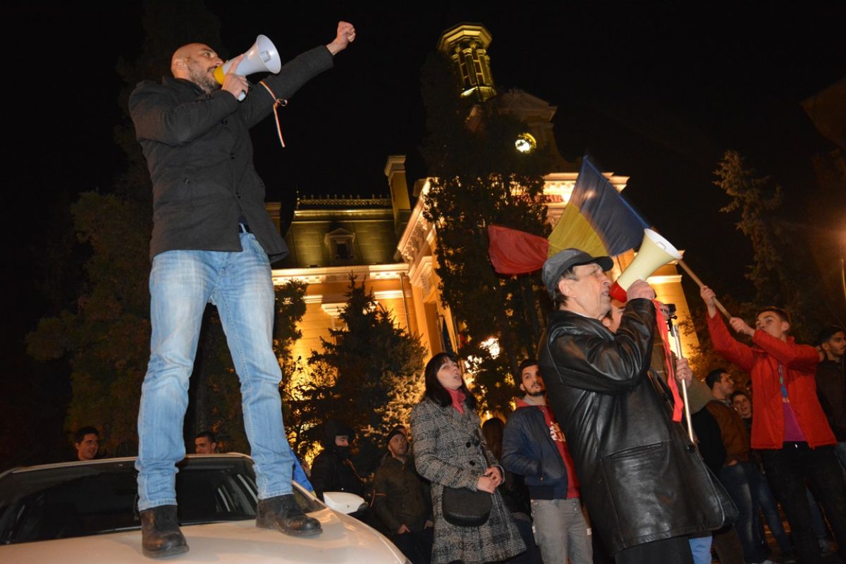 La revenirea în Piața Revoluției protestatarii și-au expus revendicările. Prin portavocea lui Bogdan Cărăușu, urcat pe propria mașină:
