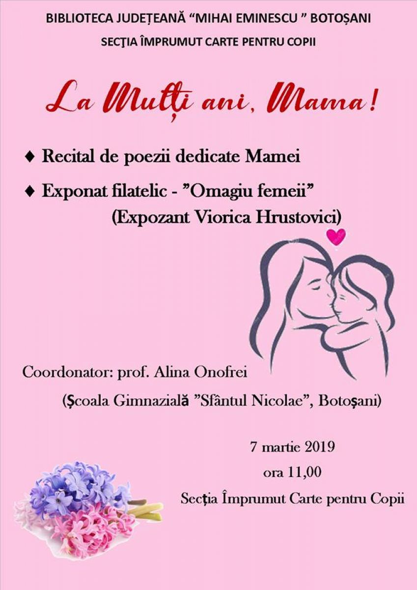 Aceștia vor susține, în data de 7 martie 2019, ora 11:00, un recital de poezii dedicate Mamei.