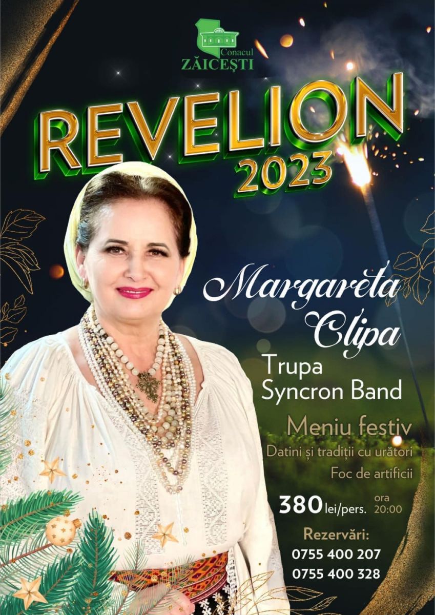 Cu muzică de calitate, delicii culinare și momente spumoase, purtați la dans de vocea fermecătoare a Margaretei Clipa, Conacul Zăicești va fi din nou locul de întâlnire în seara de 31 decembrie, pentru cei care au ales să pășească în Noul An, într-un decor aristocrat în care atmosfera caldă de casă boierească, va fi locul ideal pentru a sărbători petrecerea de revelion.
