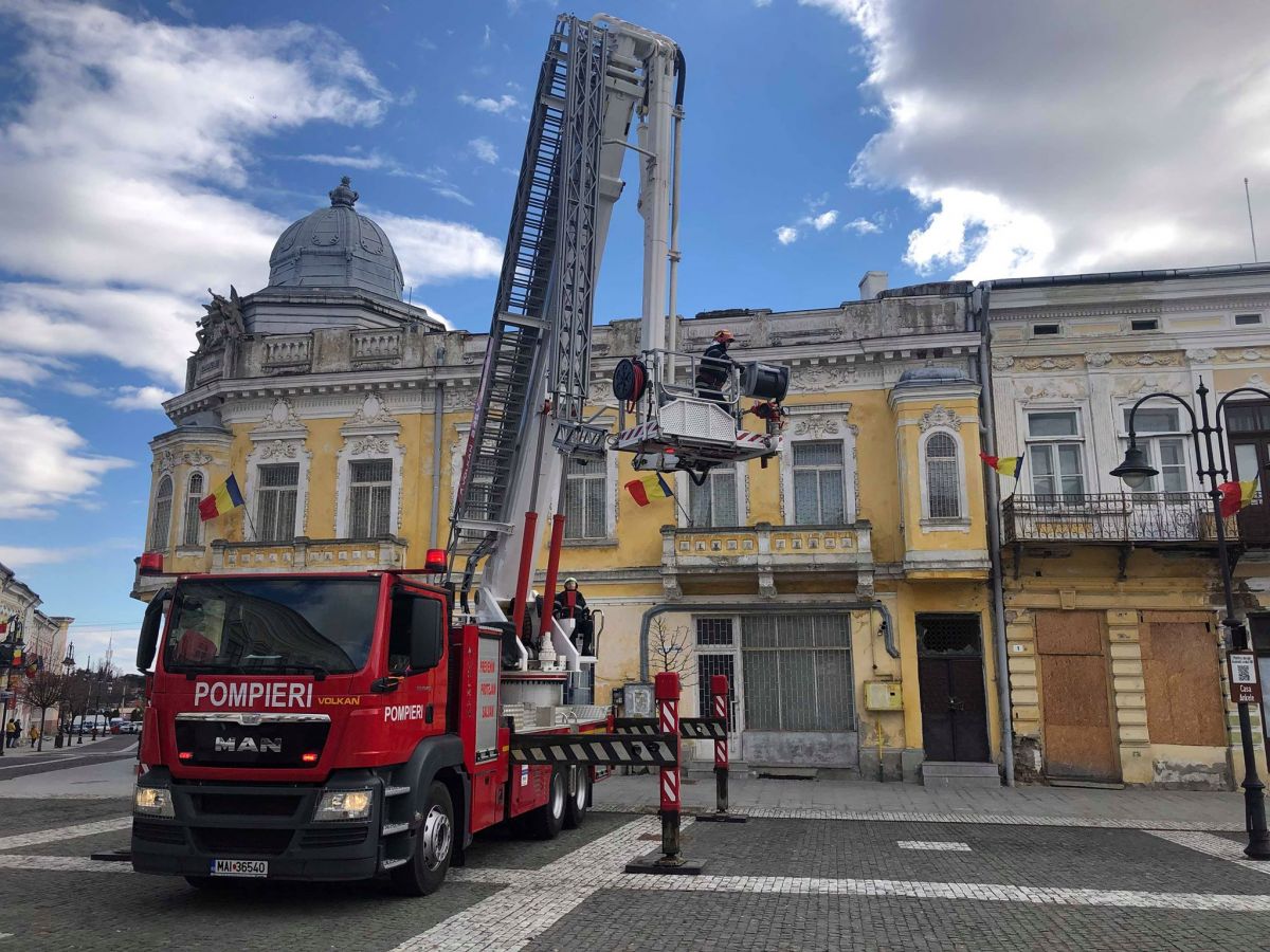 Pompierii au îndepărtat doar elementele care puneau siguranța publică în pericol având în vedere că sarcina reparațiilor revine proprietarului acestei clădiri.
