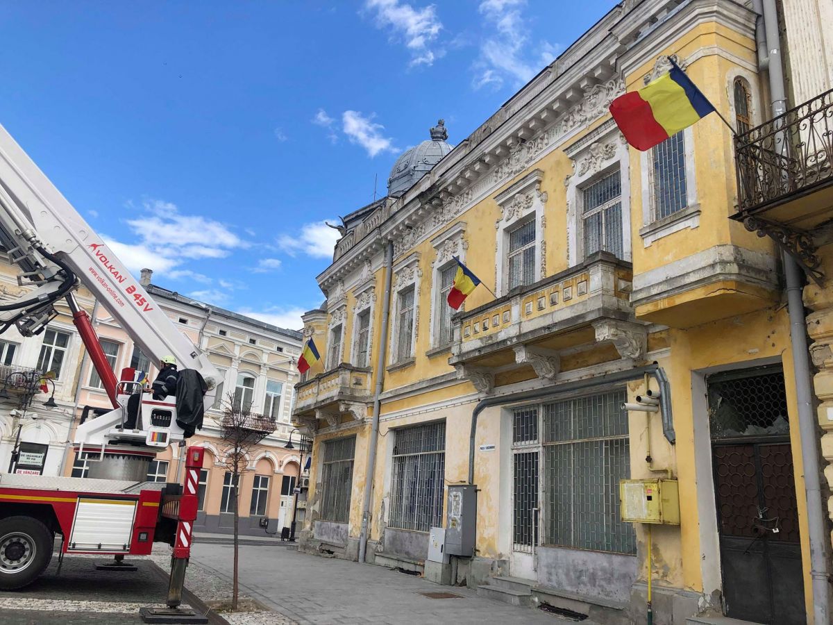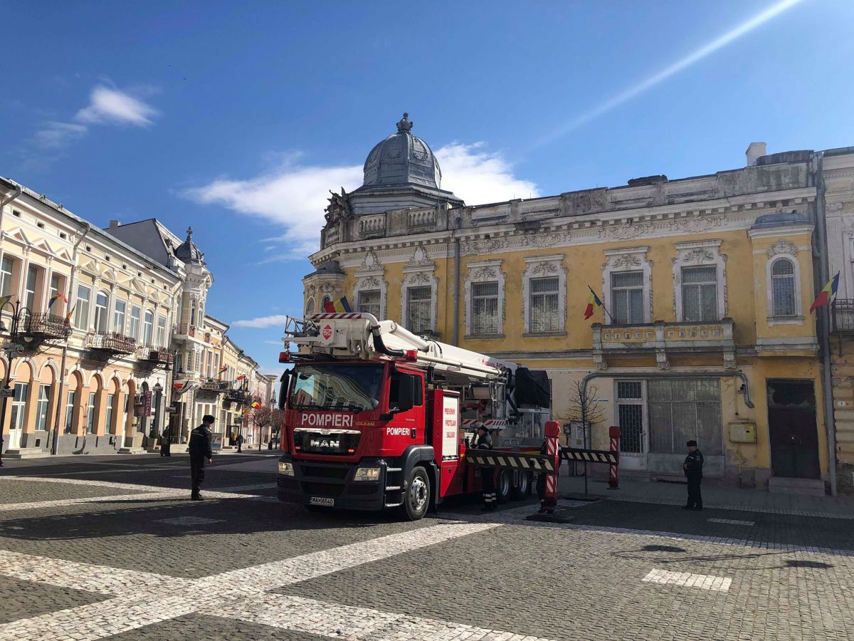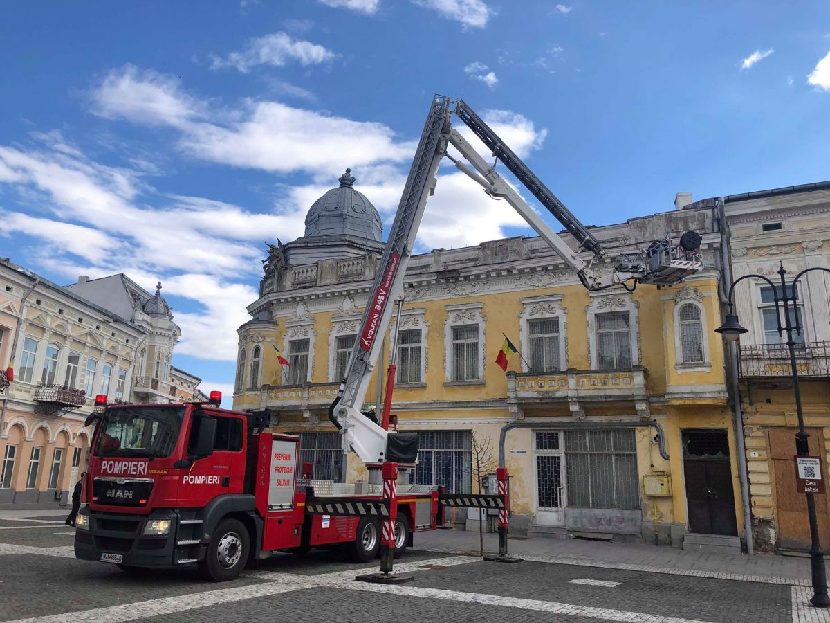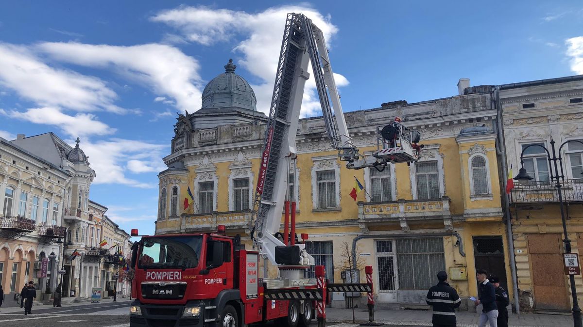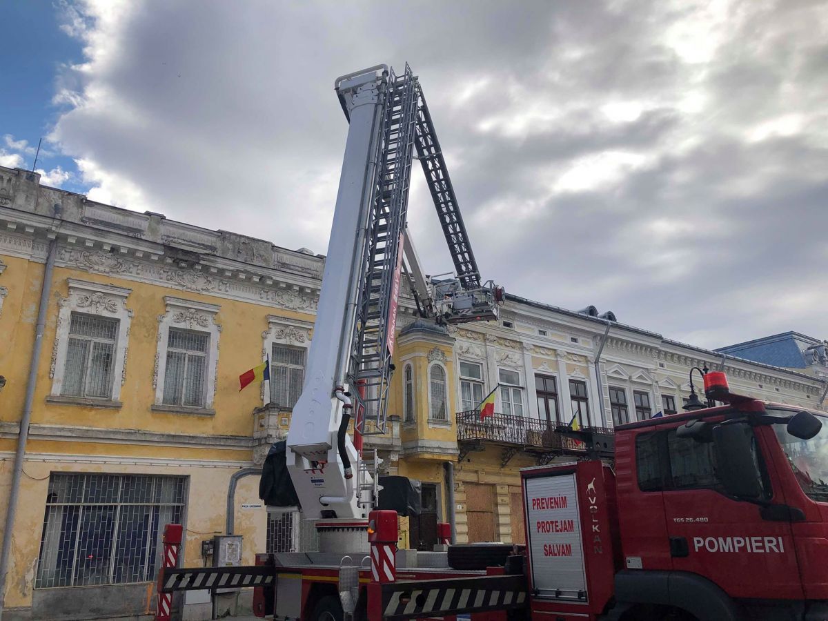 Este vorba despre Casa Ankele, un obiectiv important din Centrul Istoric al orașului, clădire construită în 1836. La fața locului s-au prezentat mai mulți pompieri, cu o autospecială ce se putea ridica la peste 3 metri.