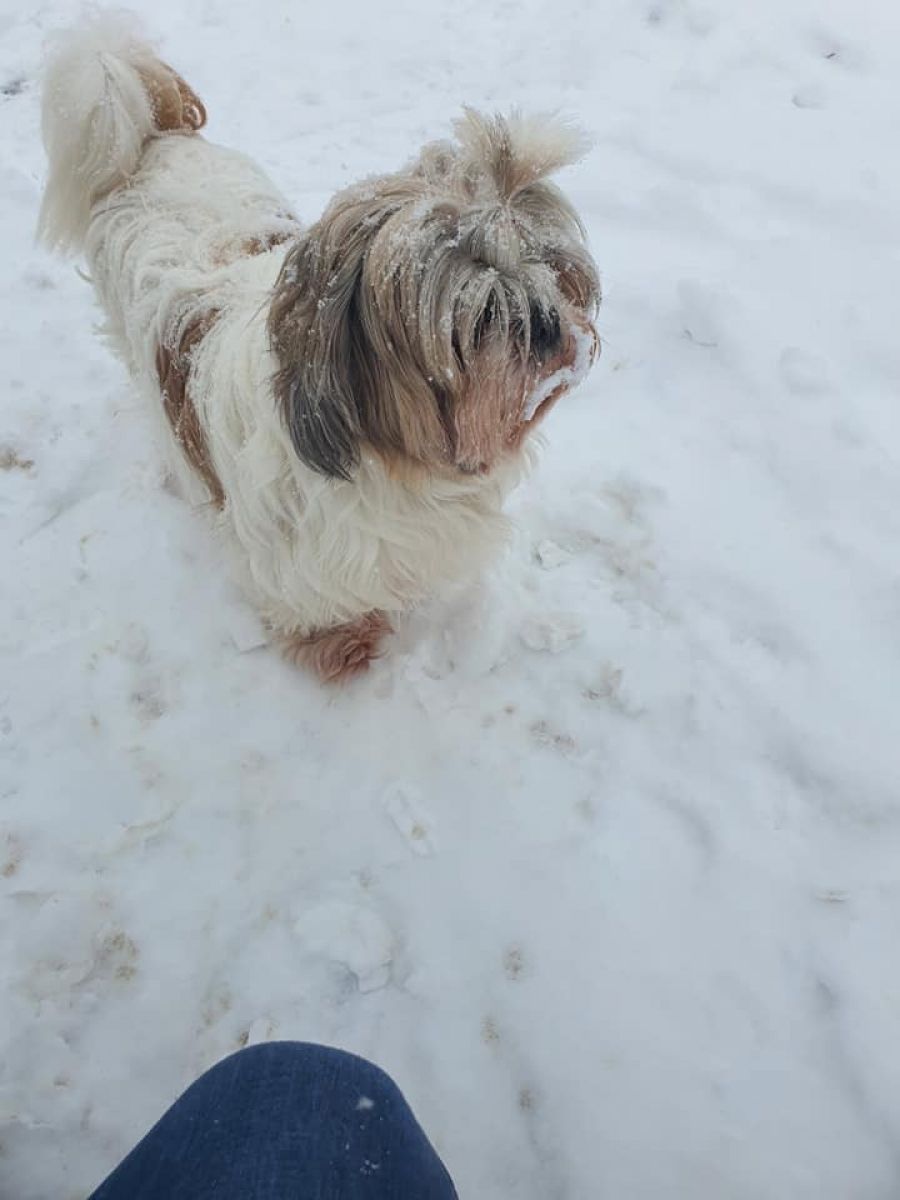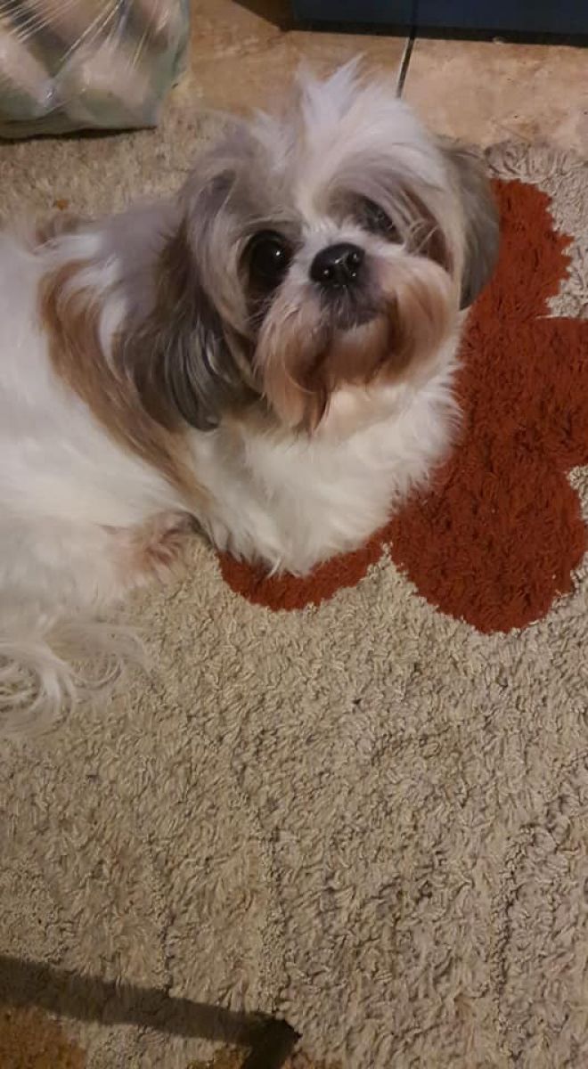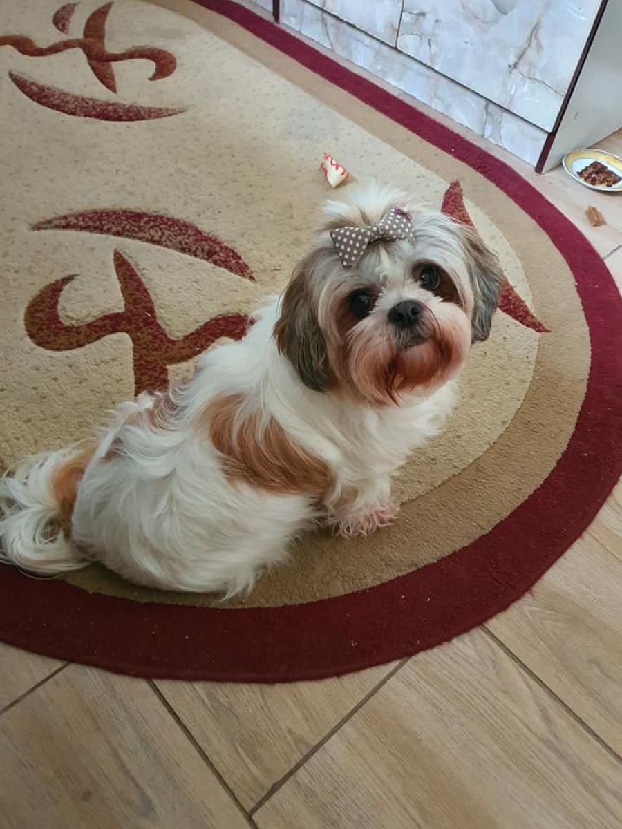 ”Astăzi 05.02.2021, ora 7 dimineața, în zona capătul lui unu. Pierdut cățel rasa shih tzu, răspunde la numele de Amy, este foarte prietenoasă și sociabilă. A scăpat din lesă și a fugit după un cățel, nu am avut posibilitatea să o prind și s-a pierdut! Vă rog din suflet să mă ajutați să o aduc acasă, suntem distruși fără ea! Este albă, cu două pete maro pe spate și una lângă codiță, iar la cap este maro cu negru. Dimineață când a plecat, avea părul prins și o zgardă roz ca cea din poză.