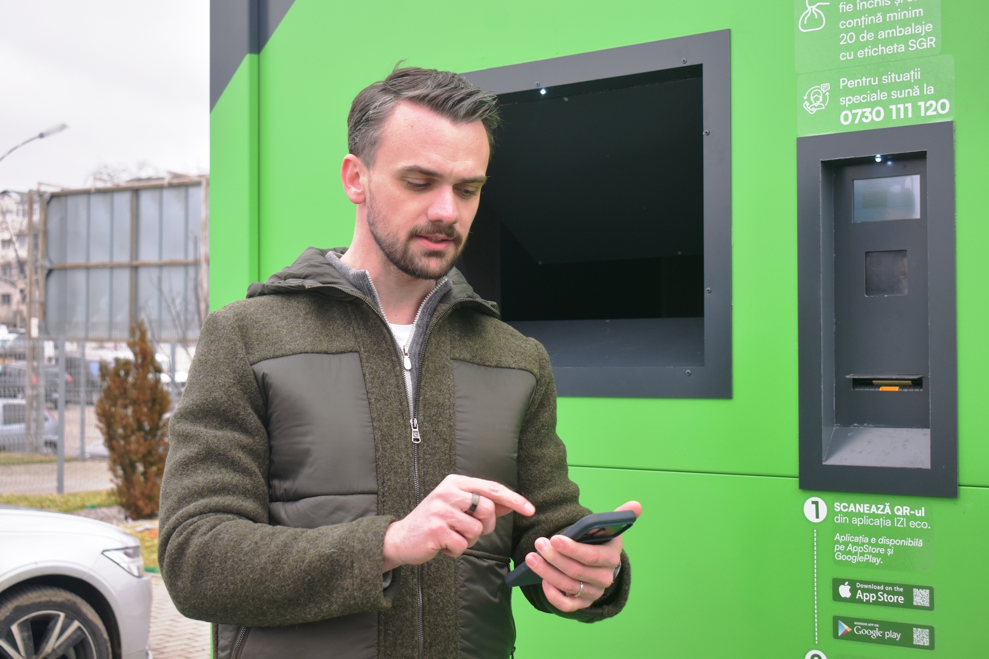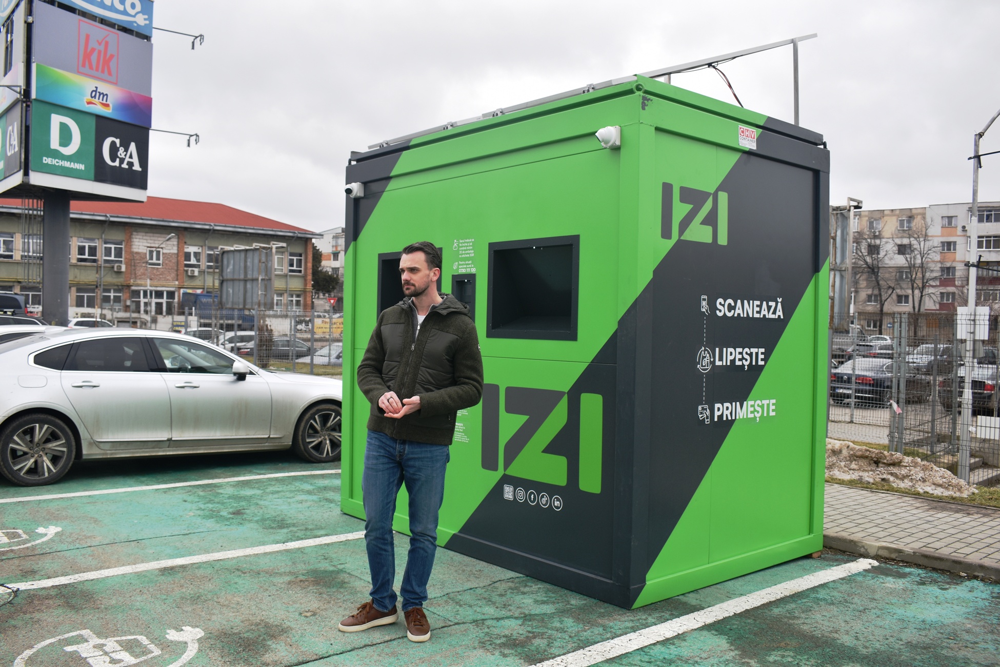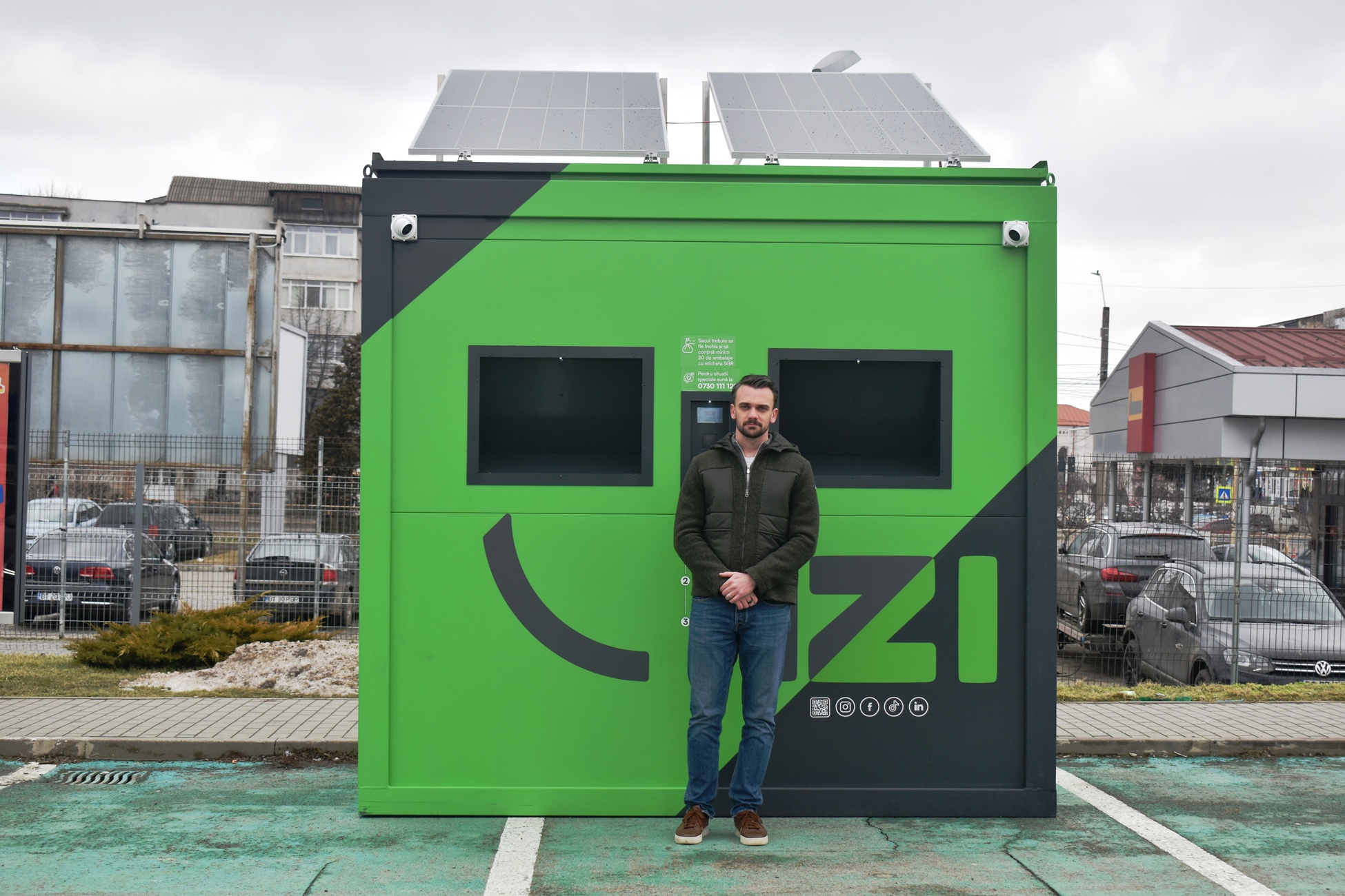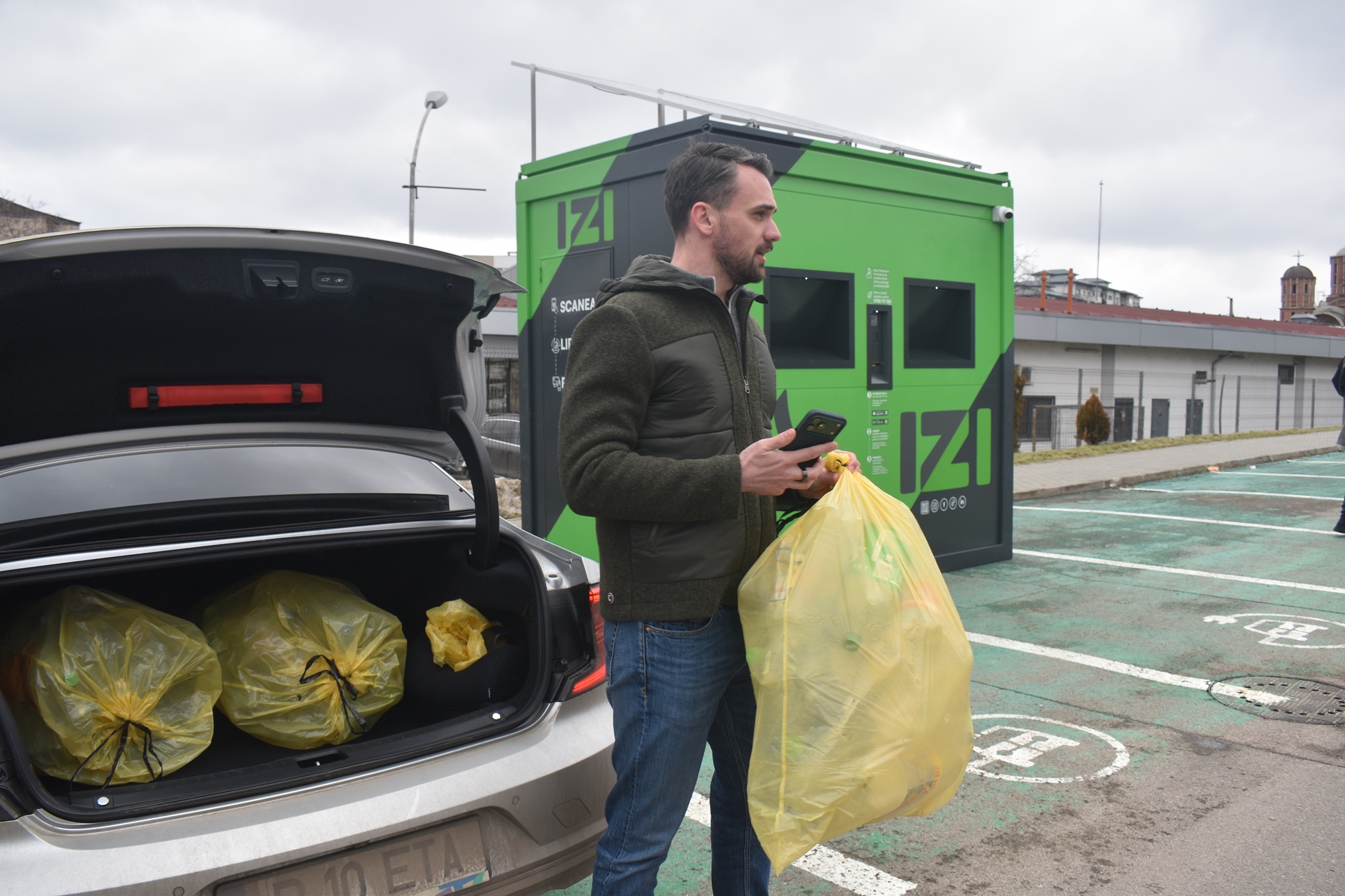 ”Diferența la IZI față de sistemele clasice este că se poate returna un sac întreg de ambalaje SGR într-un timp de sub un minut. Clienții nu mai trebuie să vină la aparatele clasice și să introducă ambalajele manual, unul câte unul, ci strâng un sac de ambalaje SGR, minim 20, își descarcă o singură dată aplicația IZI ECO, se uită pe aplicație, în hartă, și vor găsi locația lockerelor. Vin cu sacii de ambalaje la lockerele noastre IZI, își scanează codul QR, îl lipesc pe sac, depun sacul în IZI și banii intră pe card în aproximativ 24 de ore în contul indicat, pe care l-au pus în aplicație”.