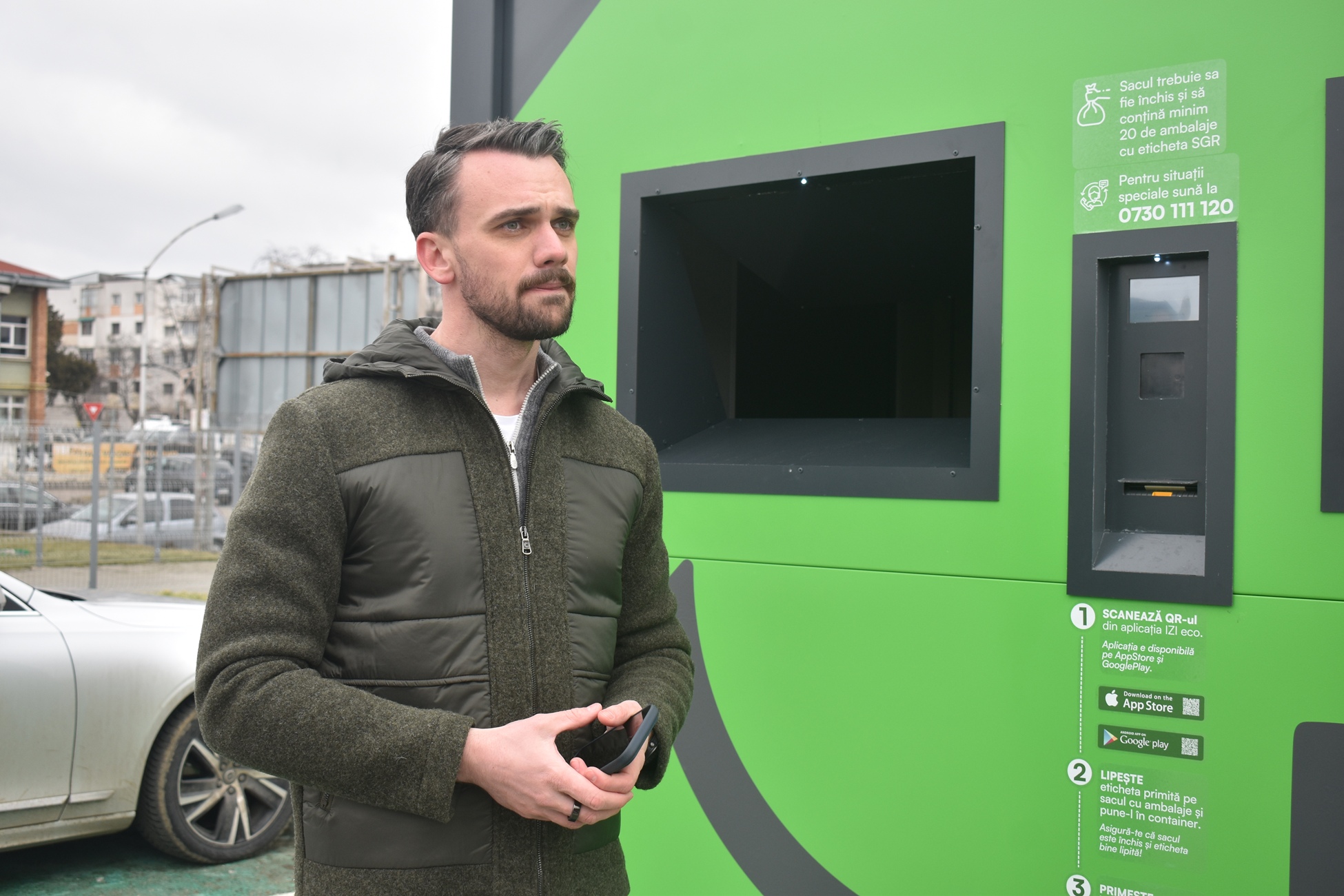 (P) Sistemul IZI de reciclare este funcțional de astăzi și la Botoșani. A fost inaugurat chiar de Ștefan Parascanu, tânărul care a obținut brevet de invenție pentru acest tip de colectare a PET-urilor, dozelor și sticlelor.