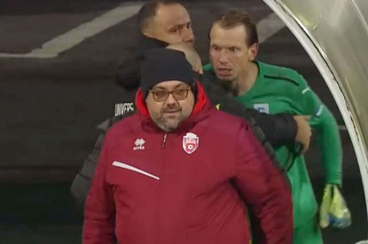 Arlauskis s-ar fi enervat că nu a primit mai rapid o minge dată afară de Țigănașu. Atunci, a început iureșul. Portarul s-a dus el să ia mingea, în timp ce înjura pe cineva din spatele porții.