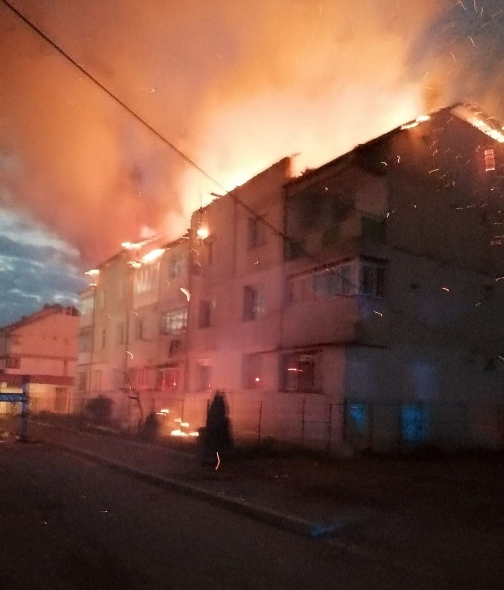 Focul se manifestă la ultimele etaje și a cuprins mansarda integral și o parte din locuințe. Pompierii se luptă să înlăture pericolul.