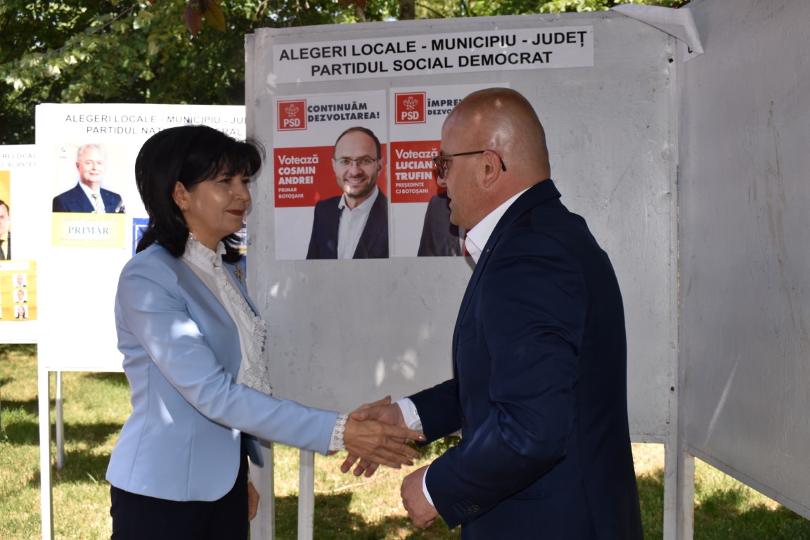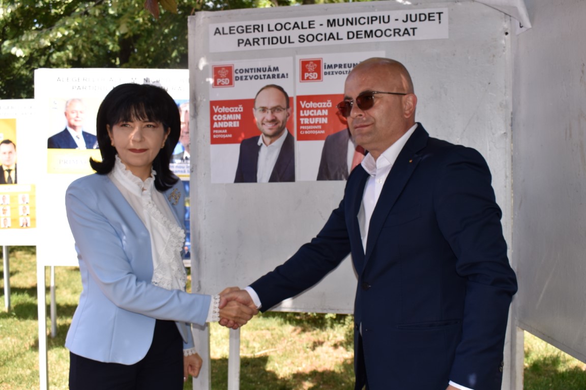 Doina Federovici, președintele PSD Botoșani și-a arătat public susținerea atât pentru primarul Cosmin Andrei, candidat la Primărie cât și pentru senatorul Lucian Trufin, candidat la Consiliul Județean.