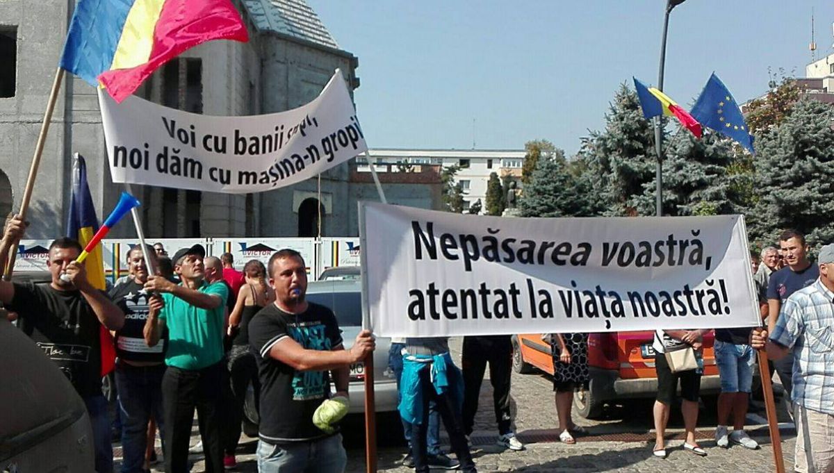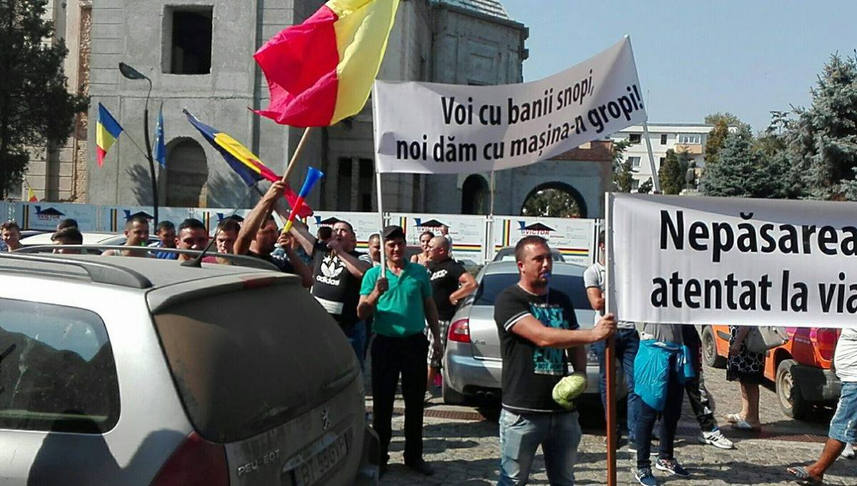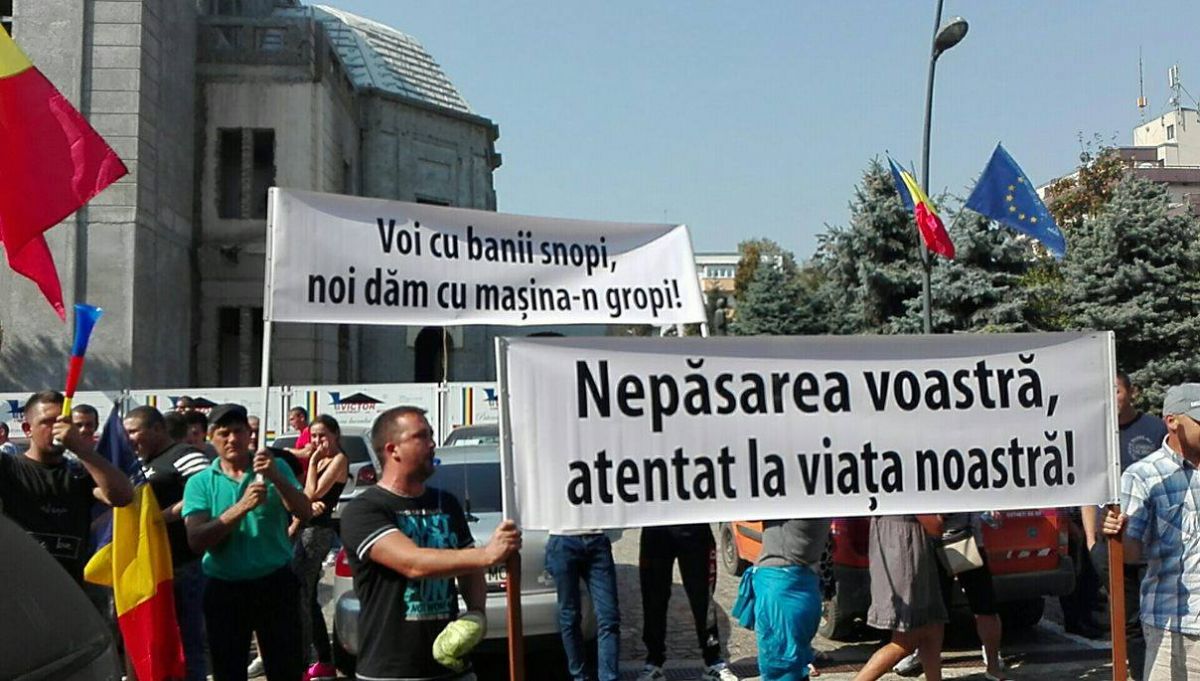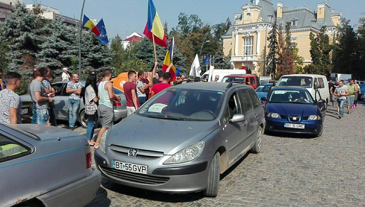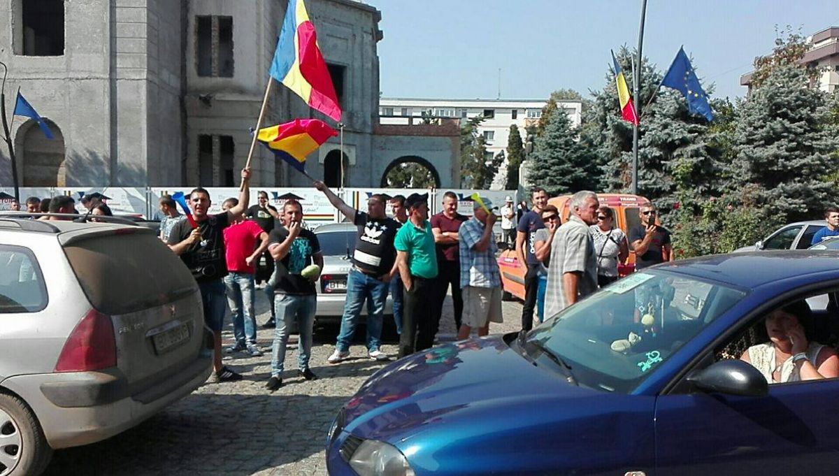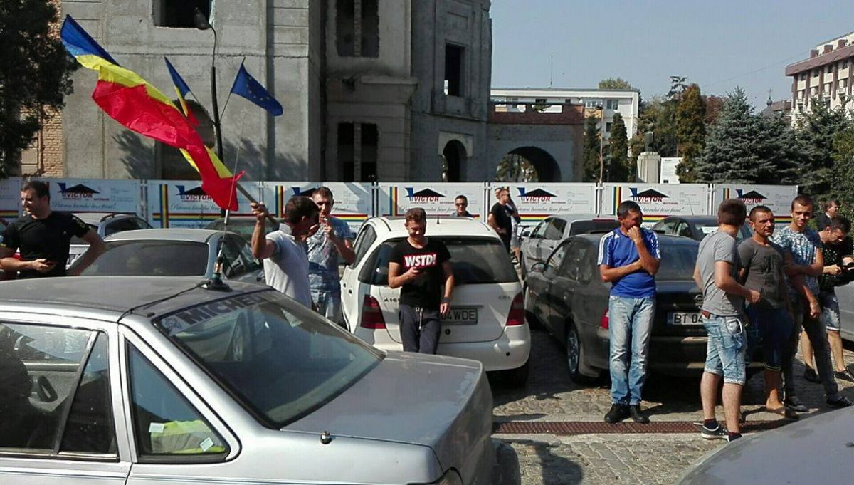 Zeci de şoferi, cu precădere din comunele Roma şi Nicşeni, şi-au parcat maşinile în faţa Palatului Administrativ şi au început să huiduiască şi să scandeze „Hoţii! Hoţii”.