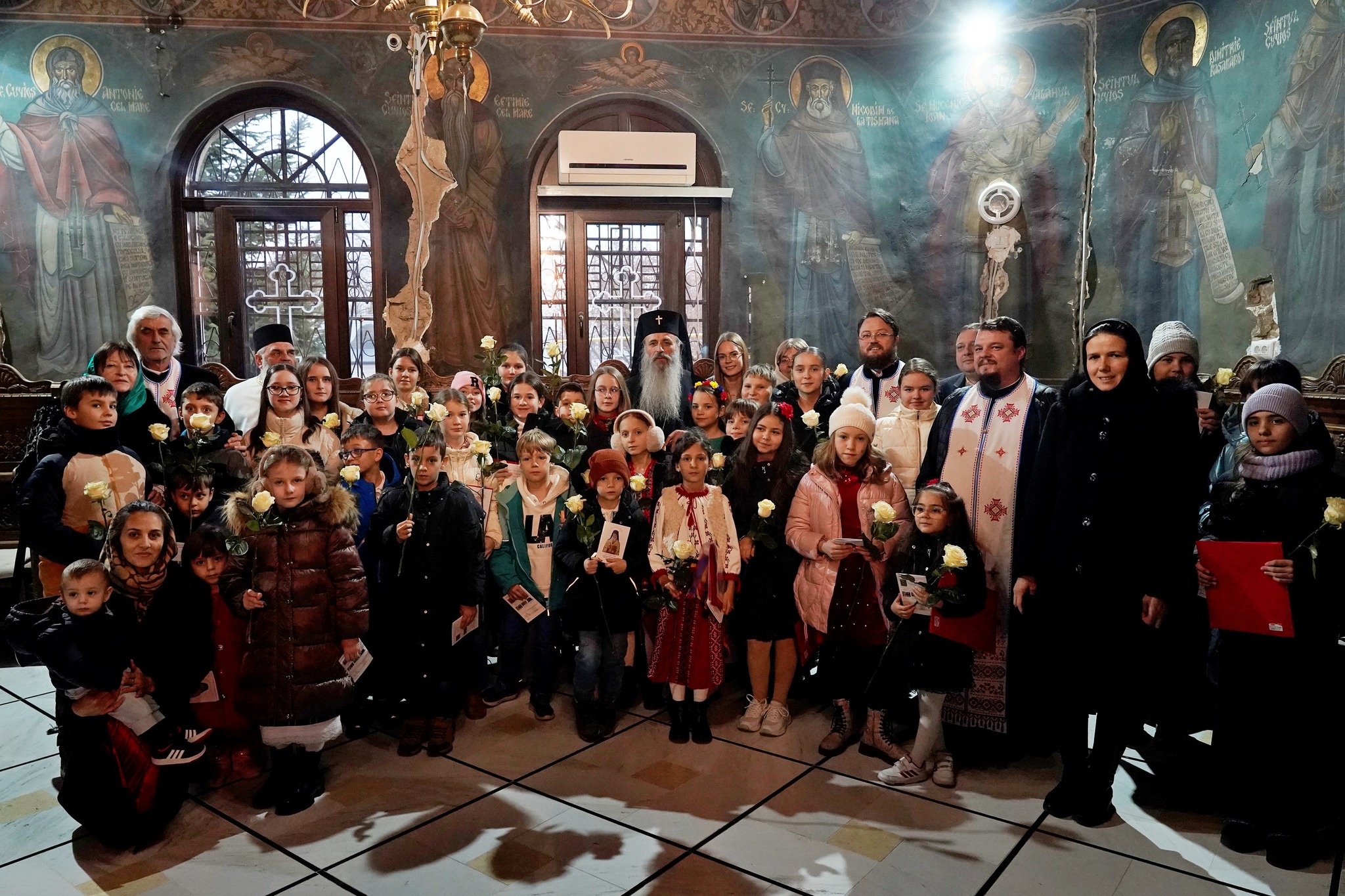 Cu acest prilej, copiii corului Sfânta Irina al Parohiei Pacea au deschis sezonul colindelor prin colindarea Înaltpreasfințitului, care i-a binecuvântat și le-a oferit câte un mic dar.