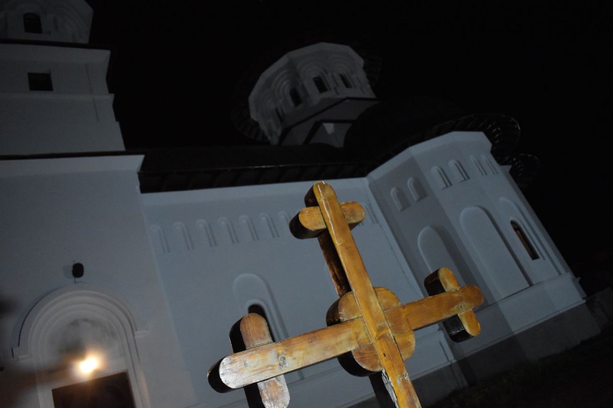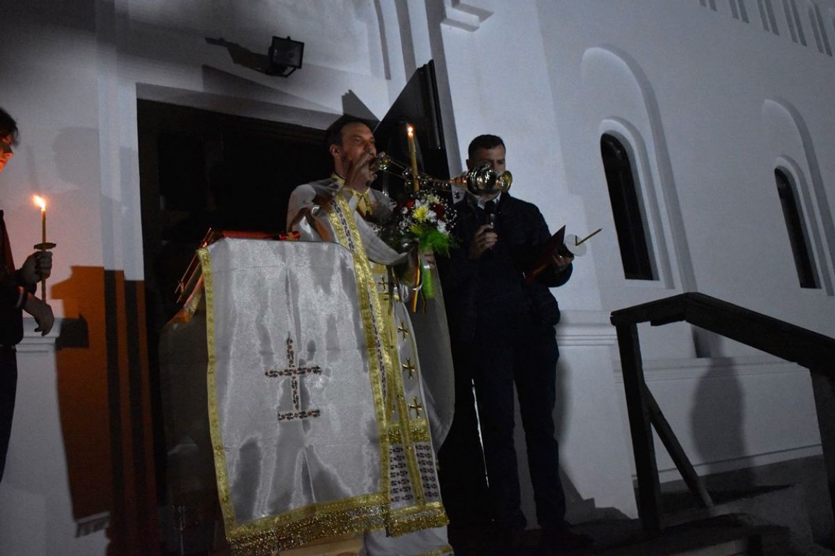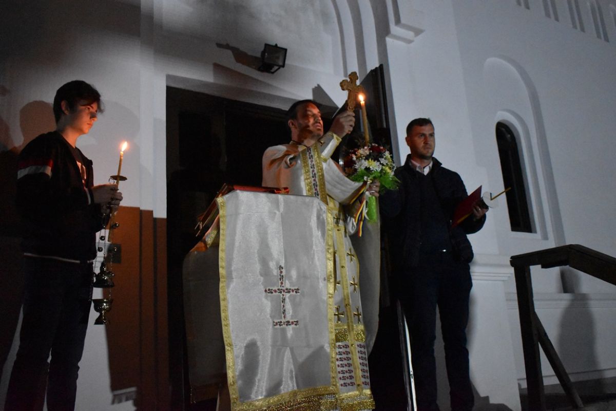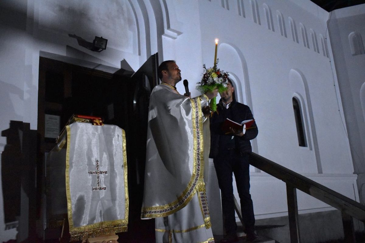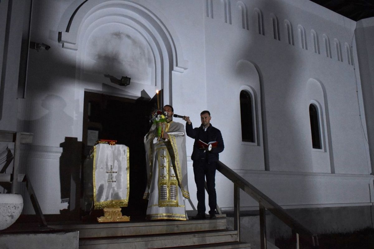 Și tot ca și când ar fi avut sute de enoriași alături, a ridicat crucea spre cer și a rostit: Hristos a Înviat!