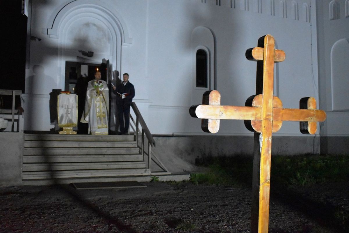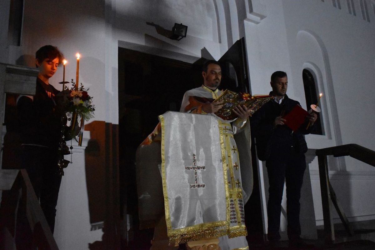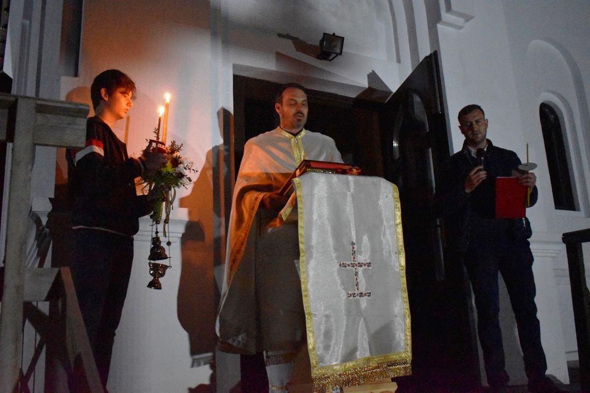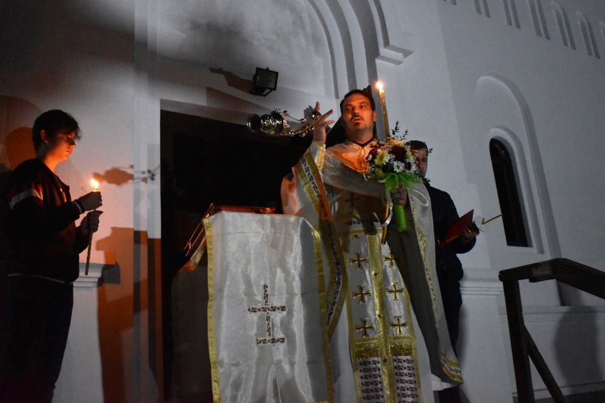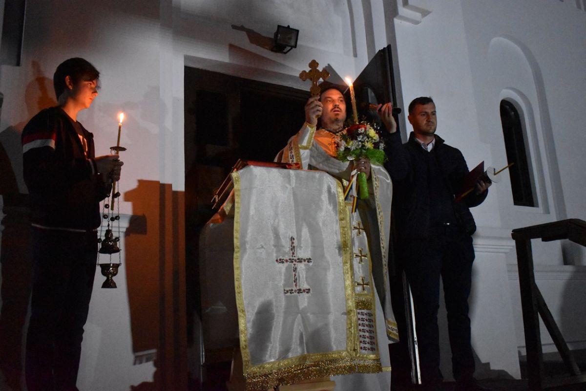 Și tot ca și când ar fi avut sute de enoriași alături, a ridicat crucea spre cer și a rostit: Hristos a Înviat!