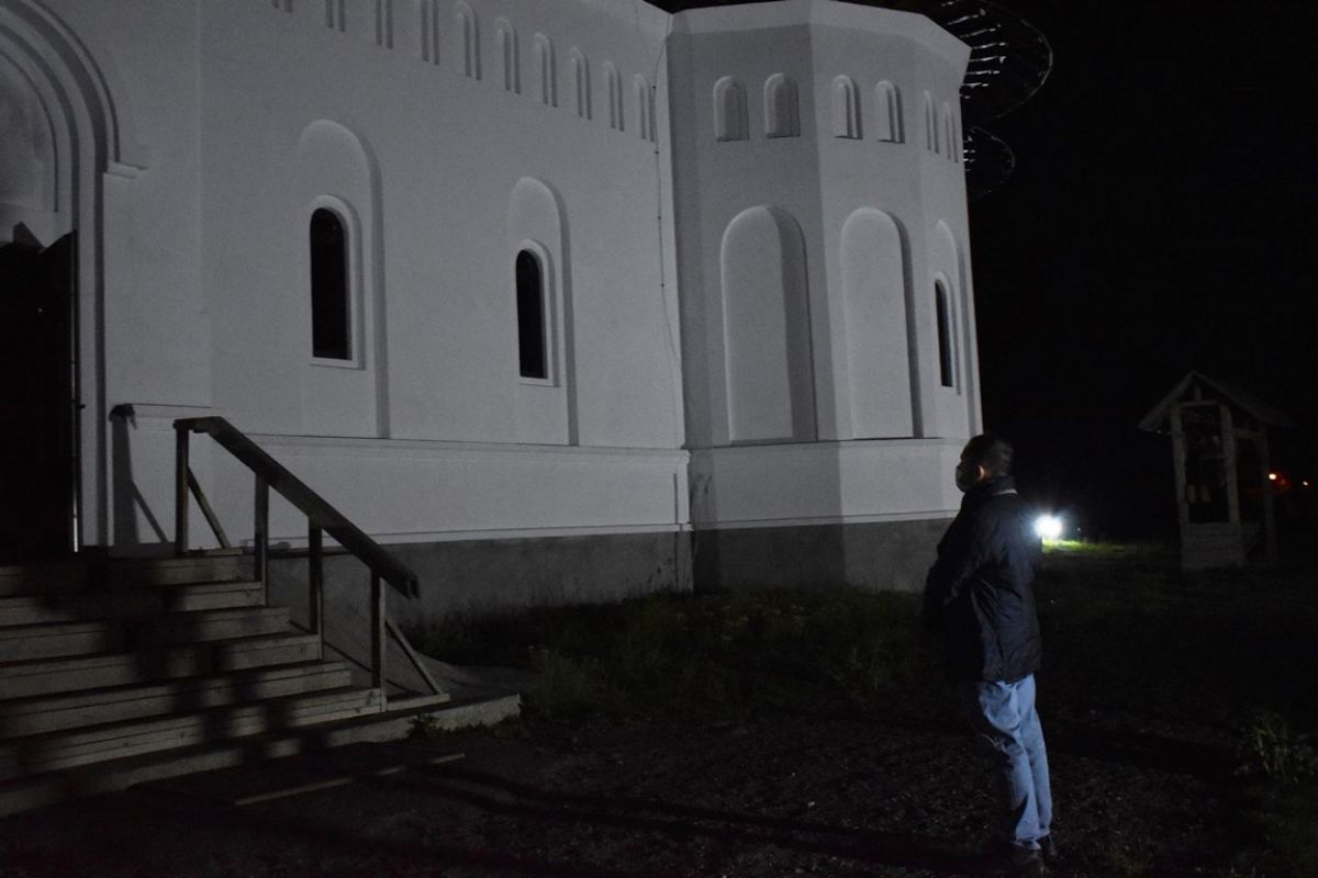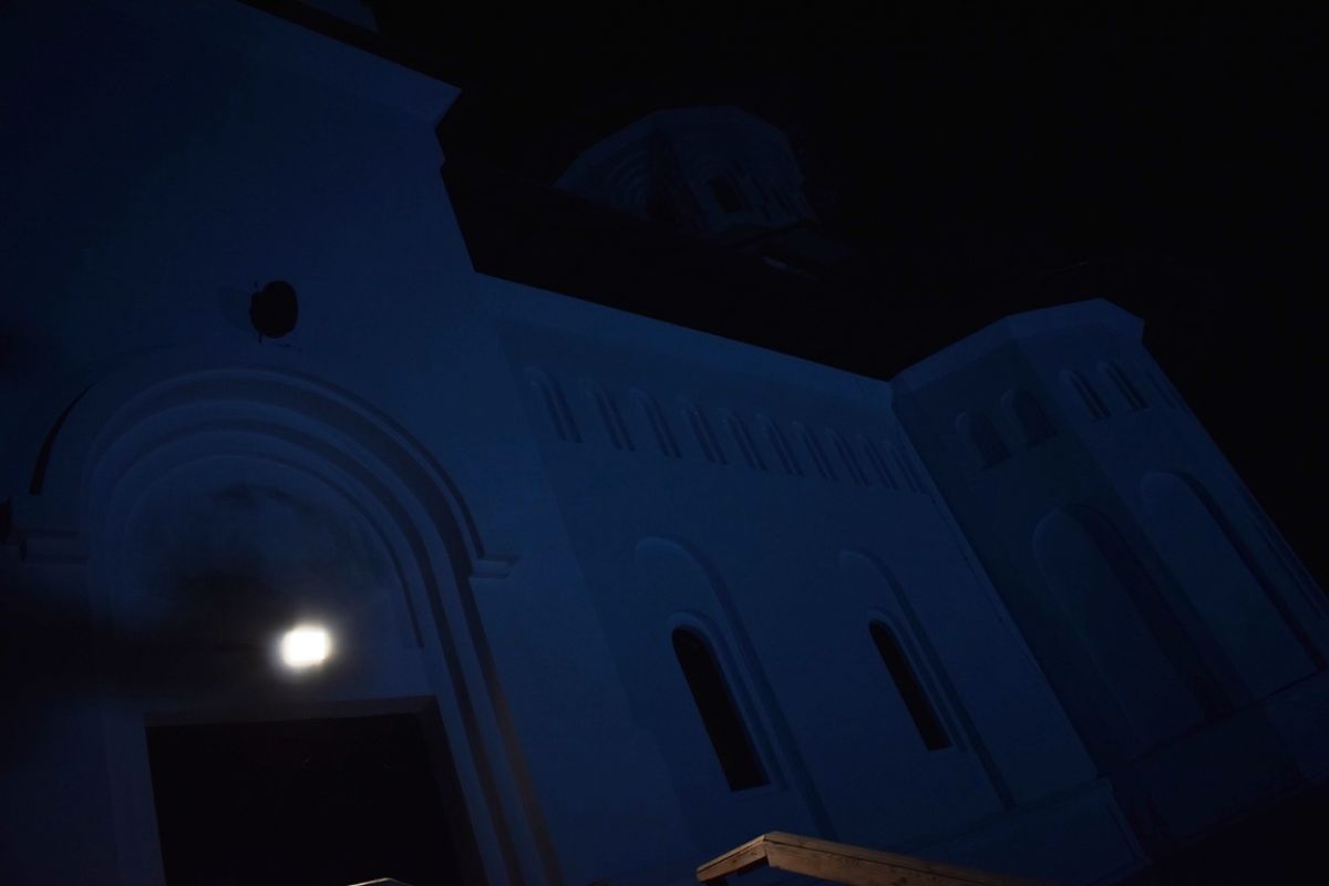 La vreo 10 minute după miezul nopții părintele a reintrat în biserică, iar ușa s-a închis după el.