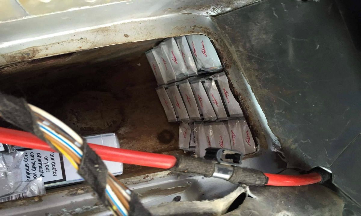 Pentru valorificarea informaţiilor deţinute, poliţiştii de frontieră au solicitat lucrătorilor vamali efectuarea unui control amănunţit asupra mijlocului de transport, în urma căruia au fost descoperite, ascunse într-un spațiu special amenajat sub bancheta spate a autoturismului, 8600 ţigarete marca Ashima.