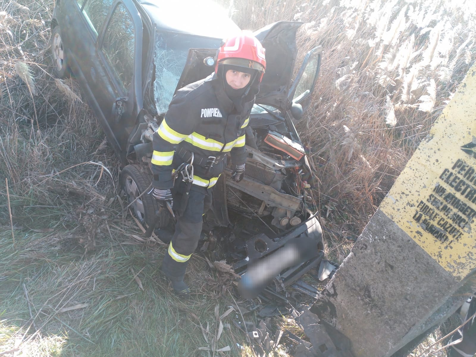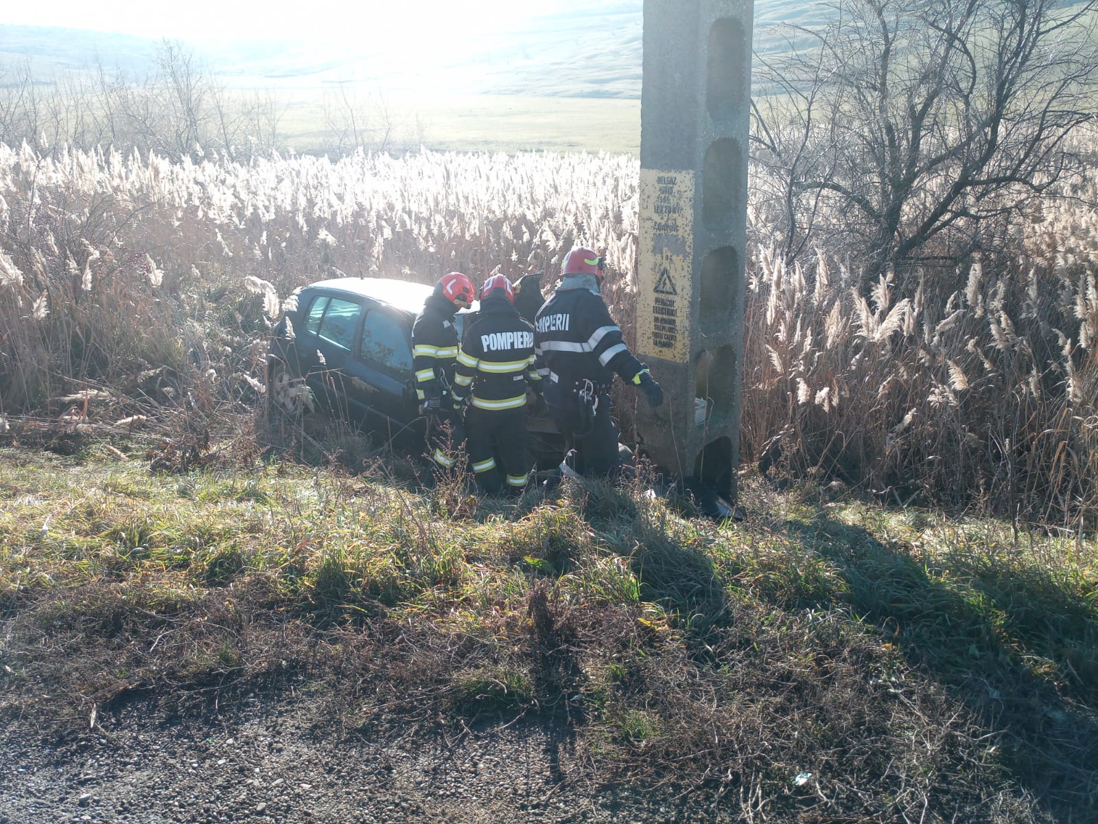 Un bărbat în vârstă de 75 de ani a avut nevoie de îngrijiri medicale, după ce autoturismul pe care îl conducea a părăsit partea carosabilă și s-a izbit de un stâlp de pe marginea drumului.