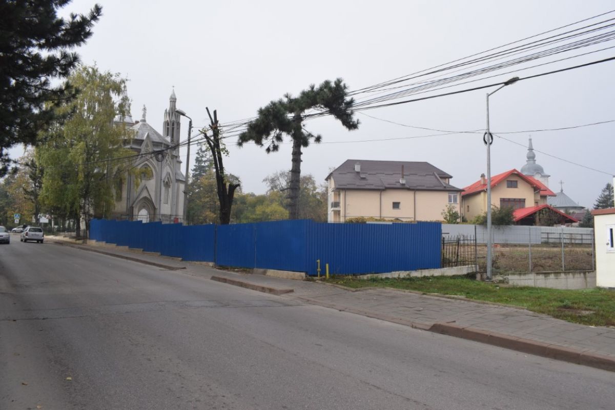 Terenul are o suprafață de 1.300 mp aproximativ și este amplasat între Biserica Catolică și un supermarket.