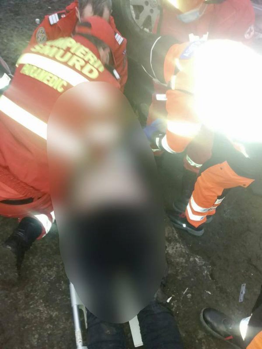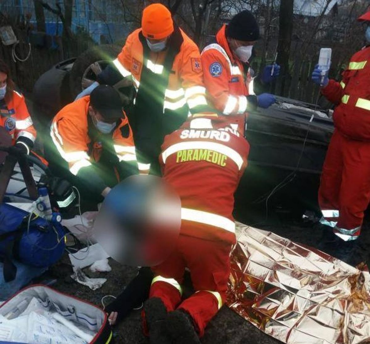Salvatorii au intervenit de urgență pentru asigurarea primului ajutor celor doi tineri răniți în accident, unul dintre ei având încă șanse minime.