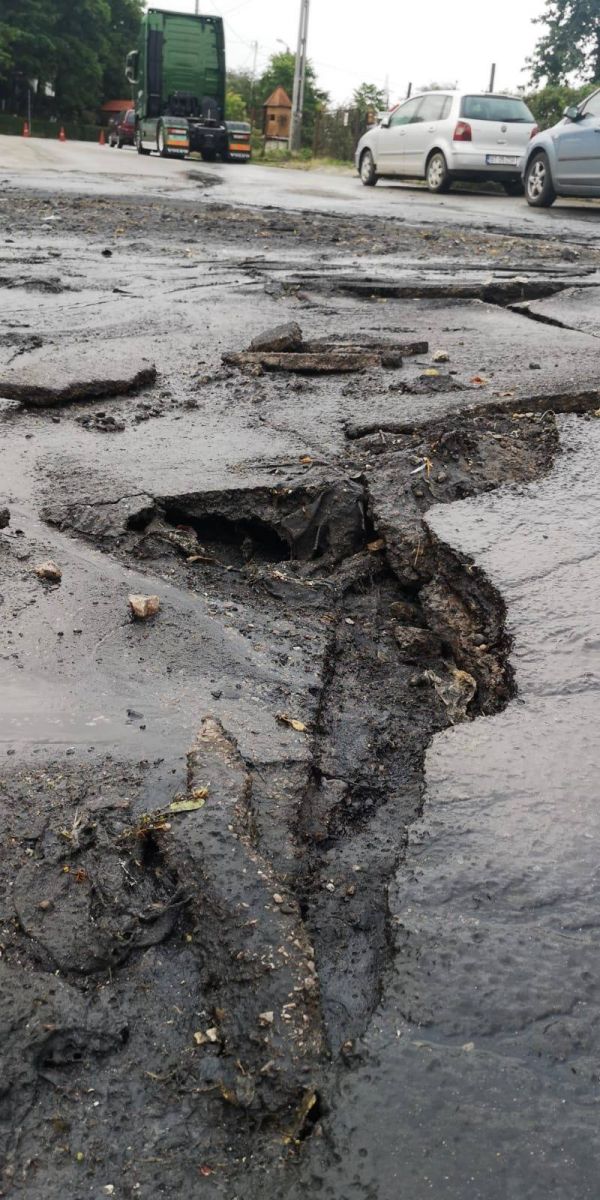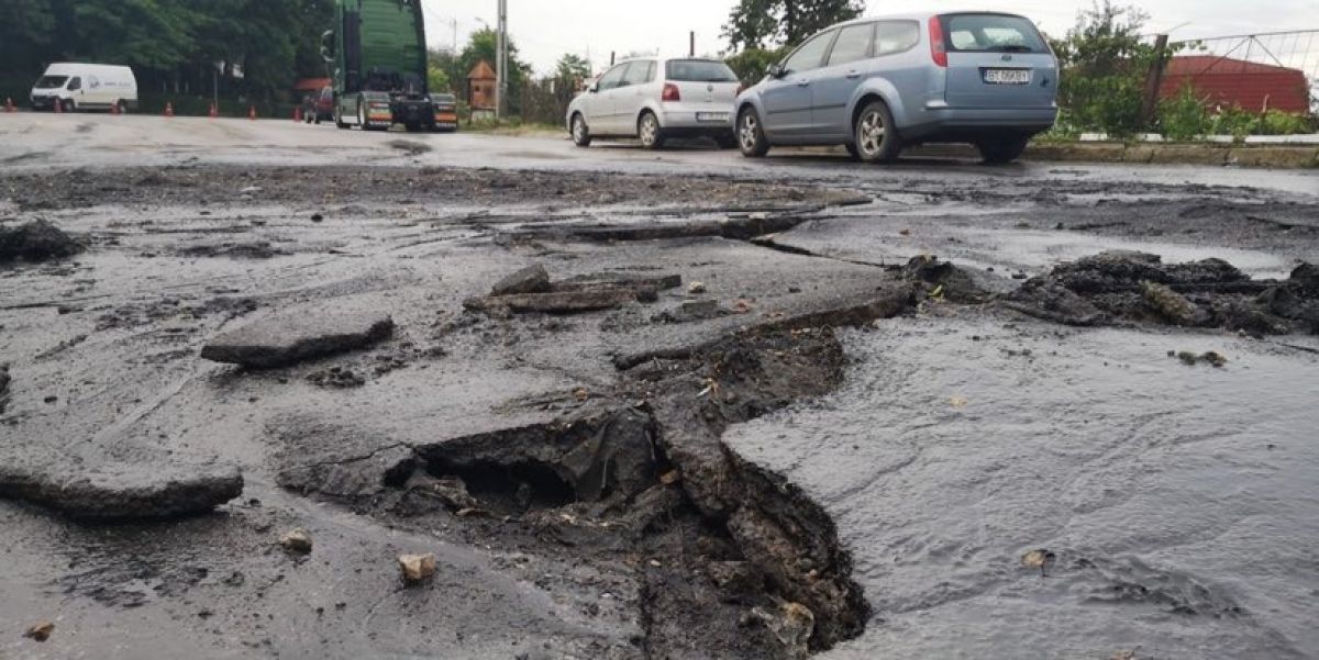 ”Din cauza rețelei care nu a făcut față, a fost aruncat asfaltul și este și foarte multă mizerie, mai ales în jurul canalizării. Nu mai deschidem circulația că e chiar periculos pentru că pot trece mașini grele și pot afecta și mai mult șoseaua”,