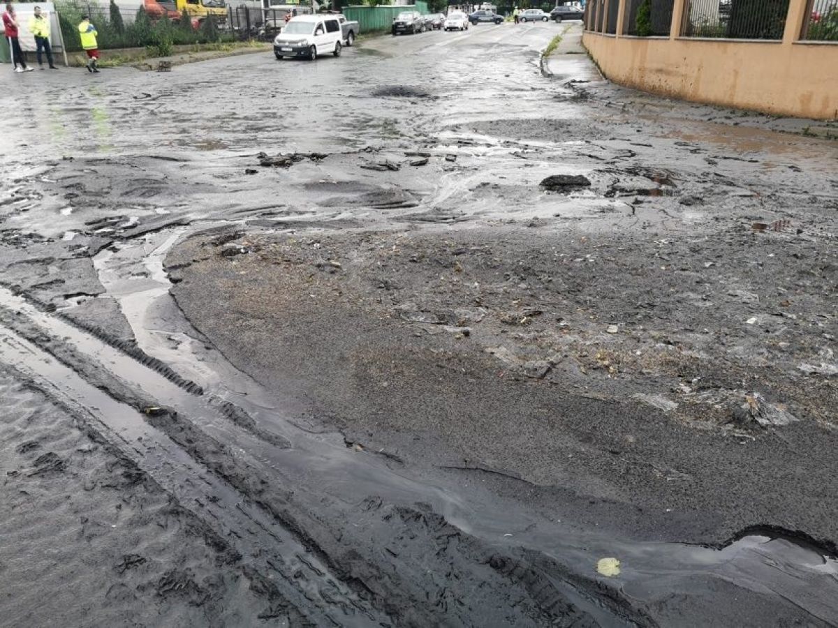 Acolo carosabilul s-a crăpat din cauza precipitațiilor deosebit de puternice și a scos la suprafață mizeriile din canalizare.