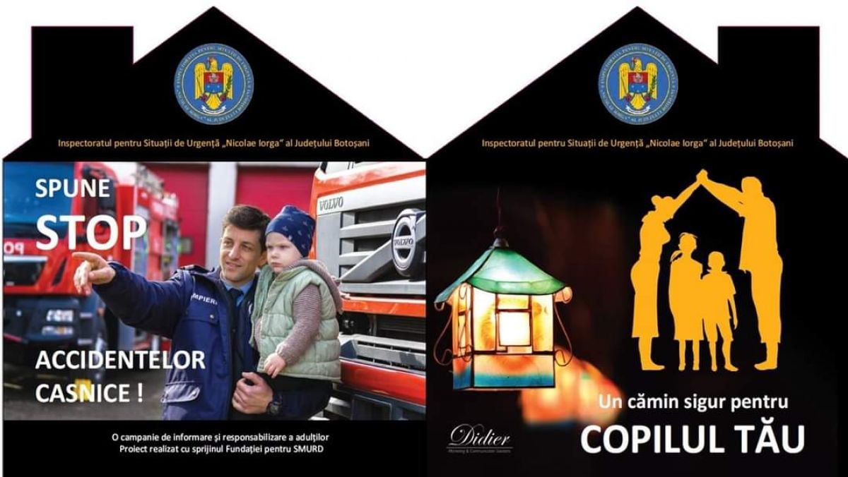 Campania de informare a adulților ”Un cămin sigur pentru copilul tău”, inițiată și derulată de Inspectoratul pentru Situații de Urgență „Nicolae Iorga” al Județului Botoșani, a determinat conștientizarea de către părinți a pericolelor la care sunt expuși copiii în mediul casnic.