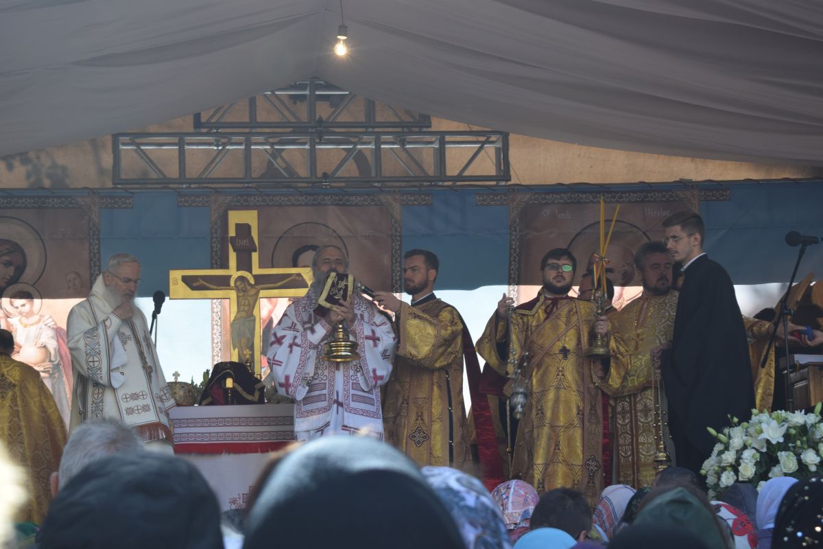 Slujba de sfințire și Sfânta Liturghie au fost săvârșite de IPS Teofan, Mitropolitul Moldovei și Bucovinei și IPS Serafim, Mitropolitul Germaniei, Europei Centrale și de Nord împreună cu un sobor de preoți și diaconi.
