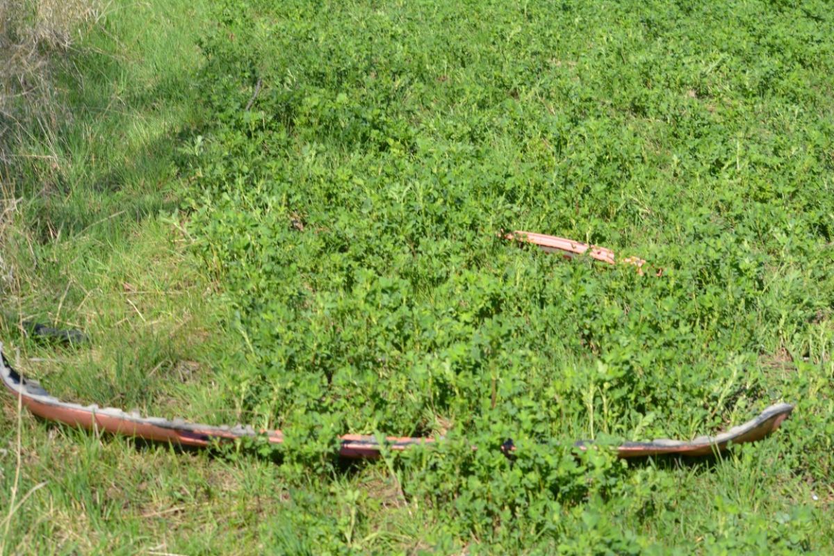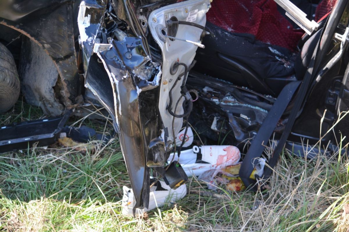 Automobilul este cel mai grav avariat chiar în locul șoferului, parbrizul fiind făcut țăndări, iar anvelopa de pe stânga față este sărită de pe geantă. De asemenea, bucăți din caroserie pot fi văzute pe câmp, în timp ce în interiorul mașinii airbagurile declanșate sunt pline de sânge.