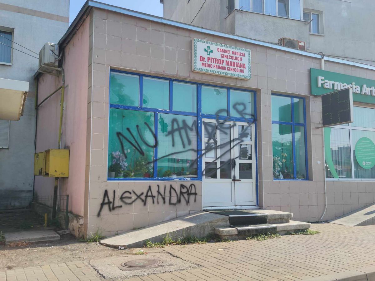 Pe pereții exteriori, cu o substanță neagră au fost scrise cuvintele: „Nu am aer” și „Alexandra”.