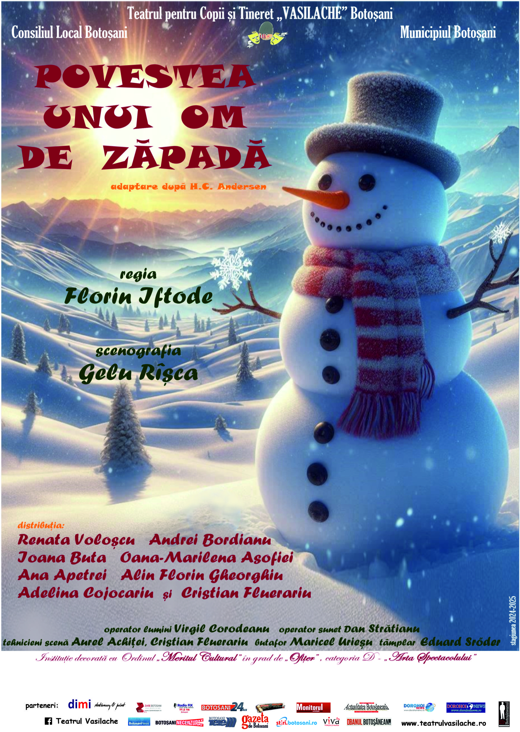 Teatrul pentru Copii și Tineret „Vasilache” vă invită să vizionați noua premieră „Povestea omului de zăpadă”, adaptare după H.C. Andersen.