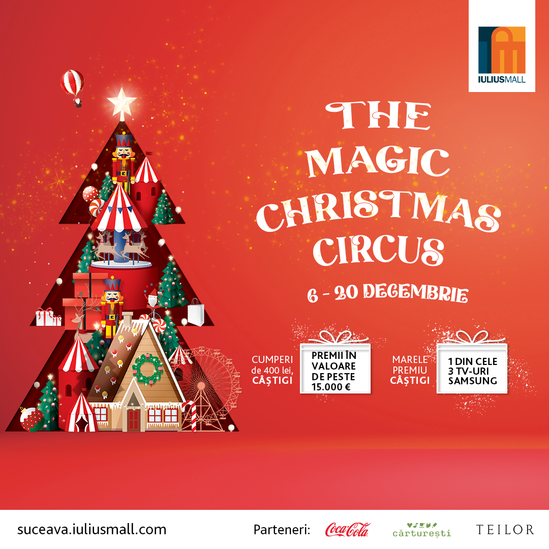 Dar magia continuă! Intri automat în Tombola de Crăciun, unde trei norocoși vor câștiga câte un televizor Samsung Crystal, perfect pentru serile cozy de sărbătoare în familie. Regulamentul campaniei este disponibil pe site-ul Iulius Mall.