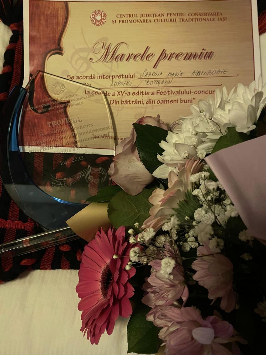 Marele Premiu al Festivalul-Concurs ”Din bătrâni, din oameni buni” a fost câștigat de Sabrina Aiacoboaie, tânăra artistă din Ibănești, județul Botoșani.
