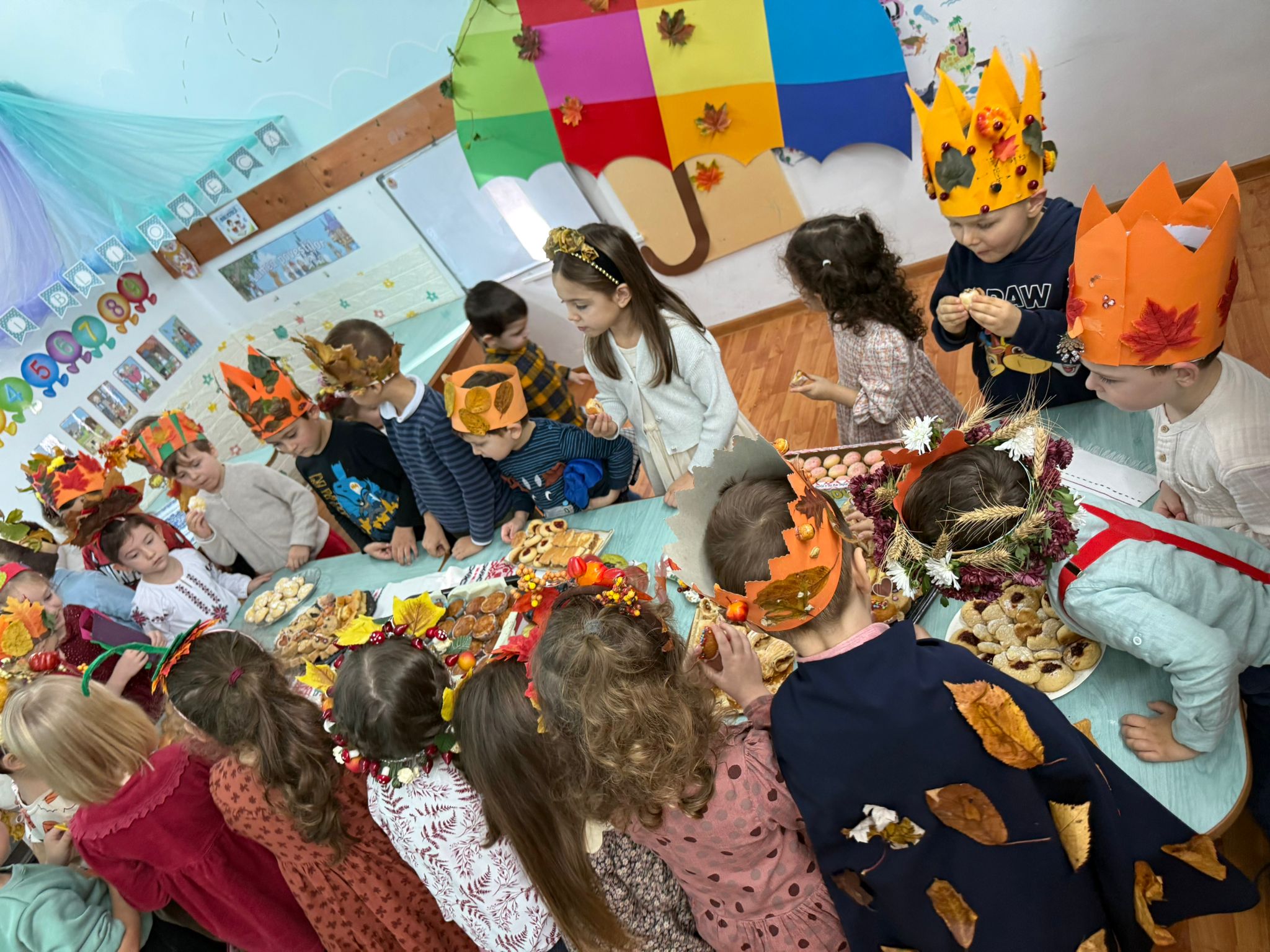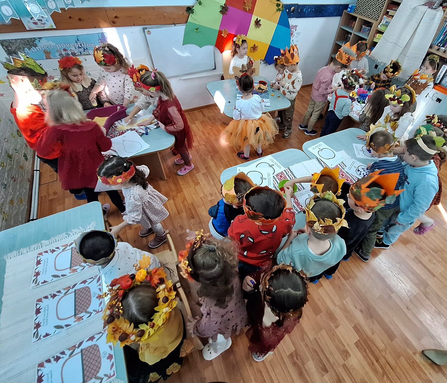 Pe parcursul întregii zile, cei mici au fost implicați în ateliere tematice de toamnă, unde au realizat lucrări artistice inspirate din natură: frunze ruginii, fructe și legume, spice de grâu și alte simboluri ale belșugului. Momentul central al activității a fost parada coronițelor de toamnă, confecționate cu mult entuziasm și imaginație, în colaborare cu părinții.