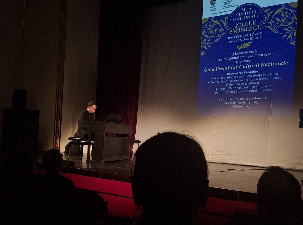 Programul zilei de 13 ianuarie s-a încheiat la Teatrul „Mihai Eminescu” Botoșani cu Gala Premiilor Culturii Naționale, un moment de celebrare a excelenței culturale românești.