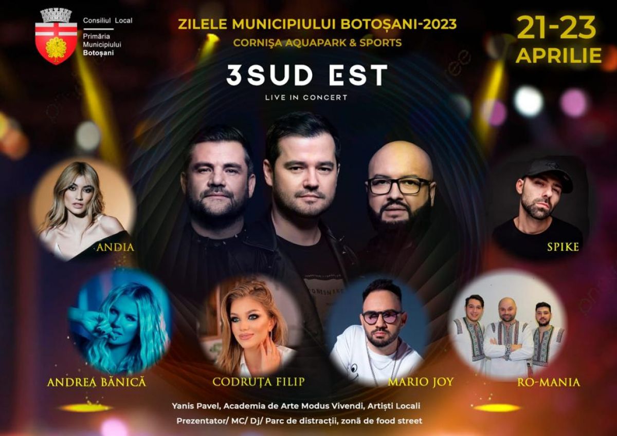 În perioada 21 – 23 aprilie 2023, pe scena amplasată la Cornișa Aquapark & Sports vor performa artiști de marcă din showbiz-ul românesc.